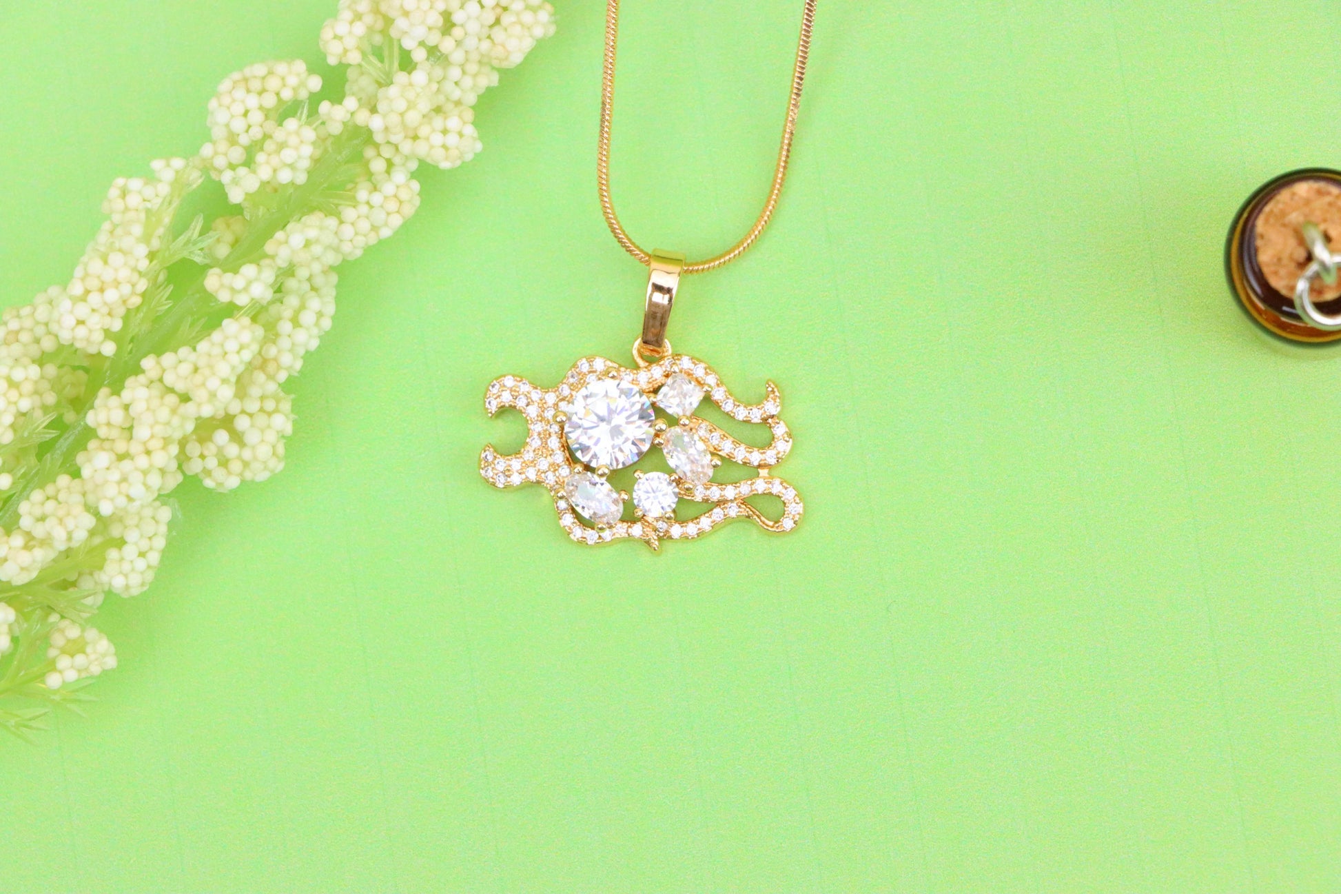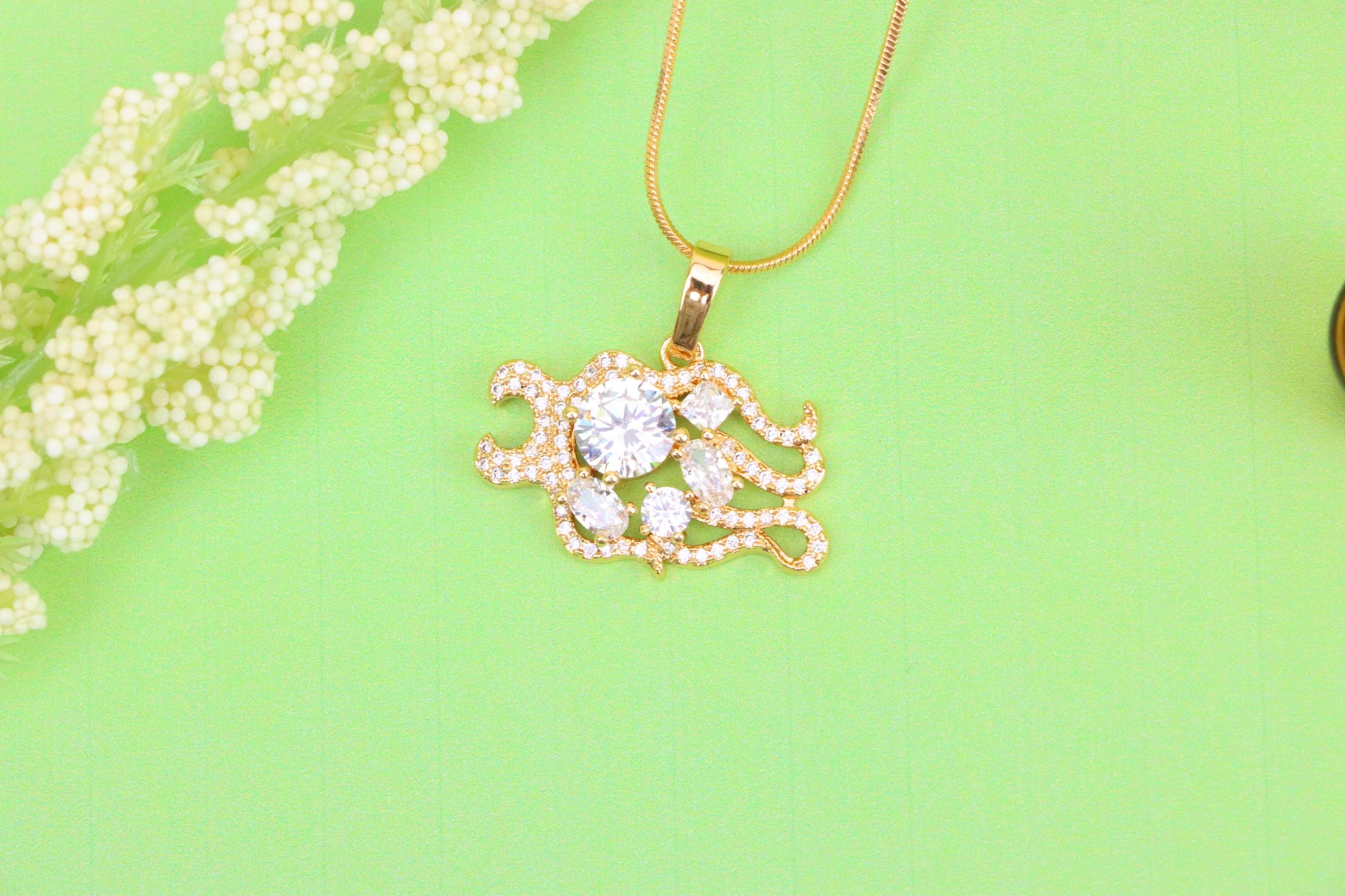A beautifully designed pendant featuring a mermaid tail motif, adorned with brilliant cubic zirconia stones for a radiant, fantasy-inspired look.