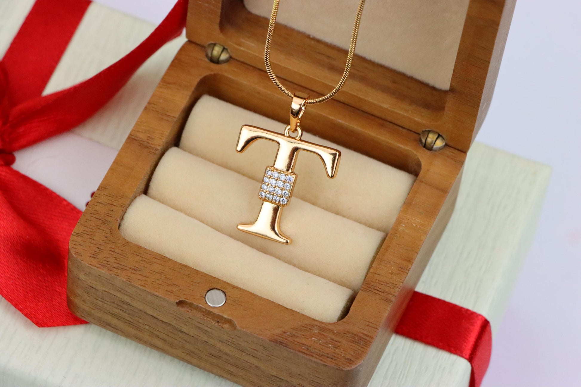 Chic and meaningful T initial pendant, ideal for everyday elegance.