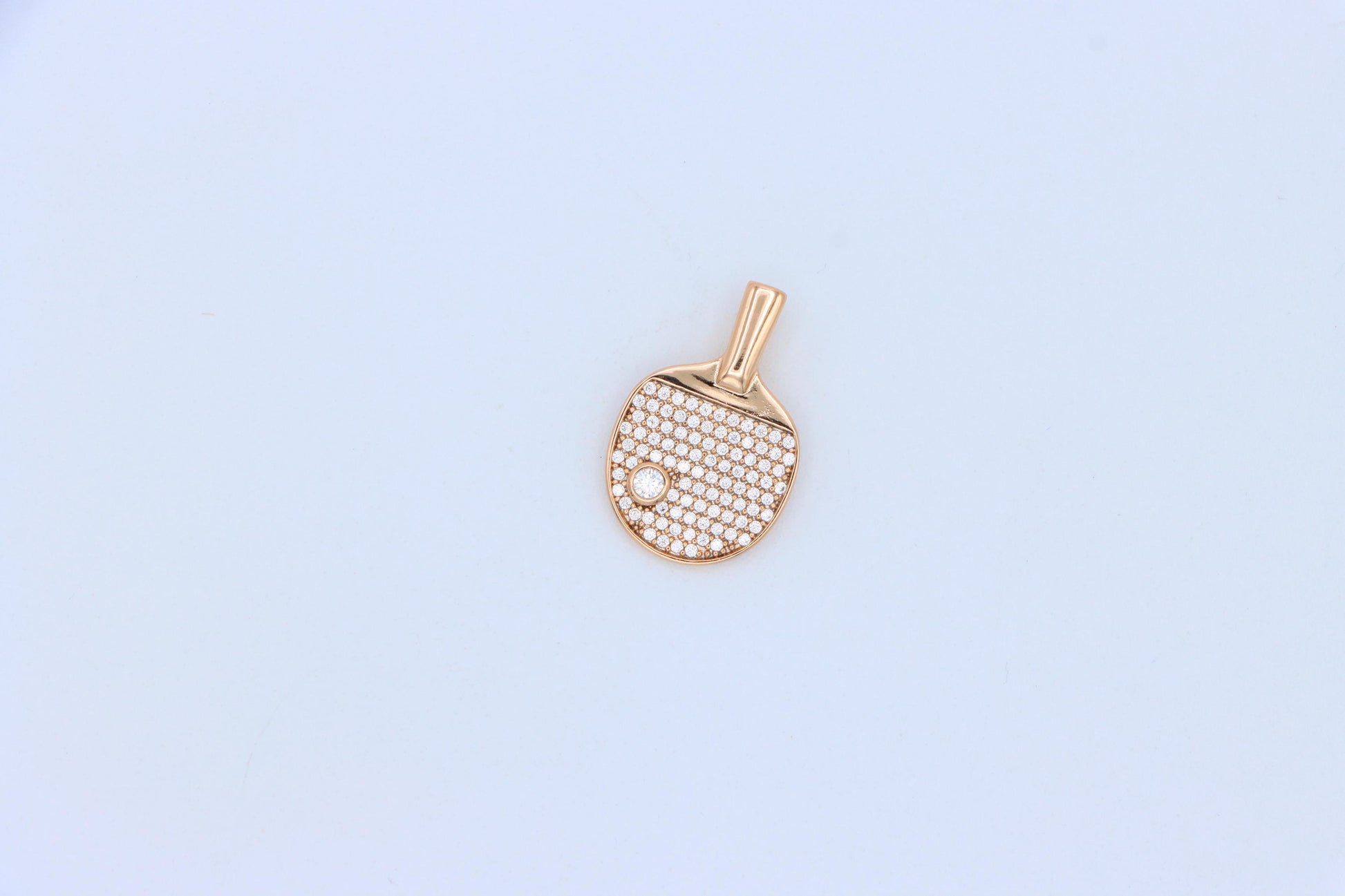Unique and stylish pendant shaped like a table tennis racket, embellished with sparkling cubic zirconia stones, perfect for sports lovers and jewelry enthusiasts.