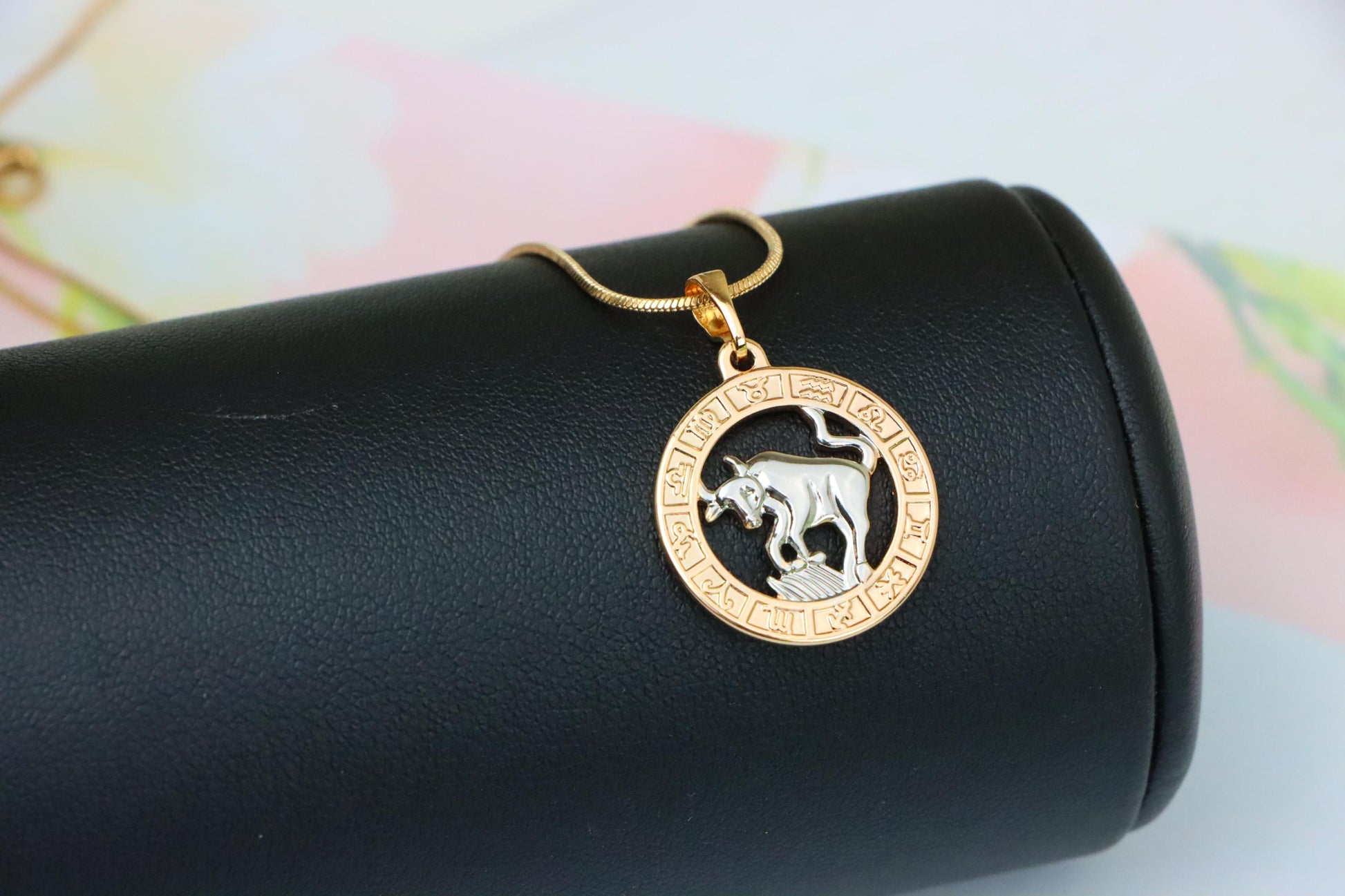Celebrate strength and stability with this intricately crafted rose gold Taurus pendant, perfect for zodiac jewelry lovers.