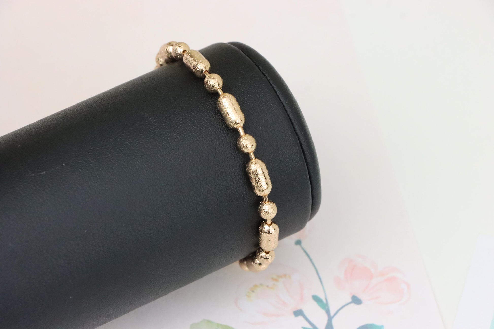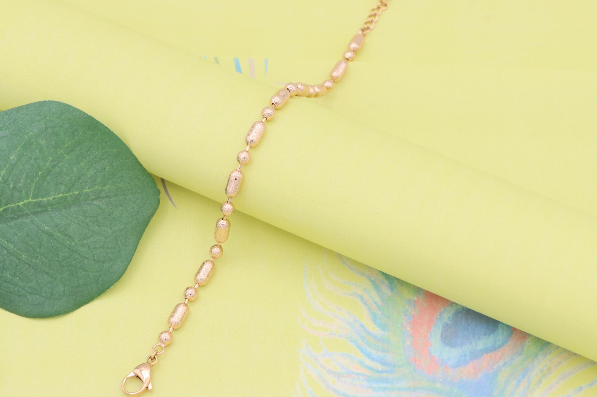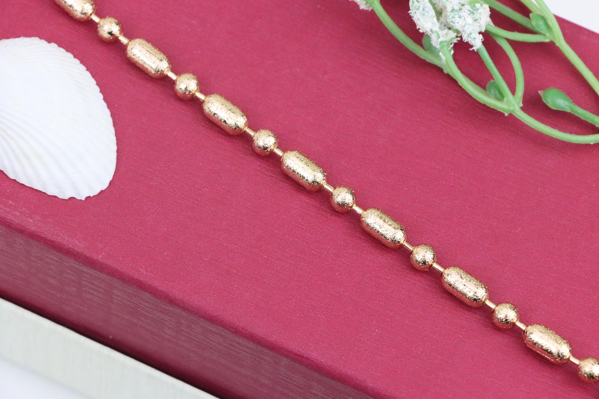 ✔ Elegant rose gold bracelet featuring textured oval and round beads