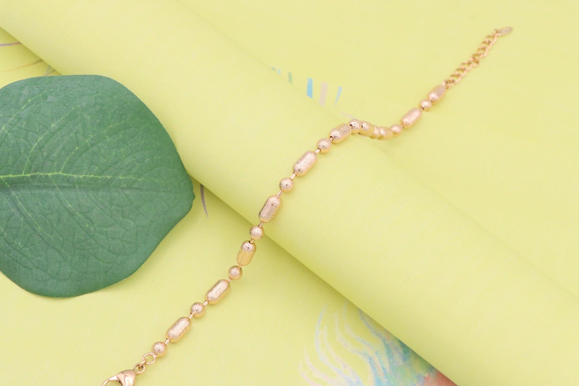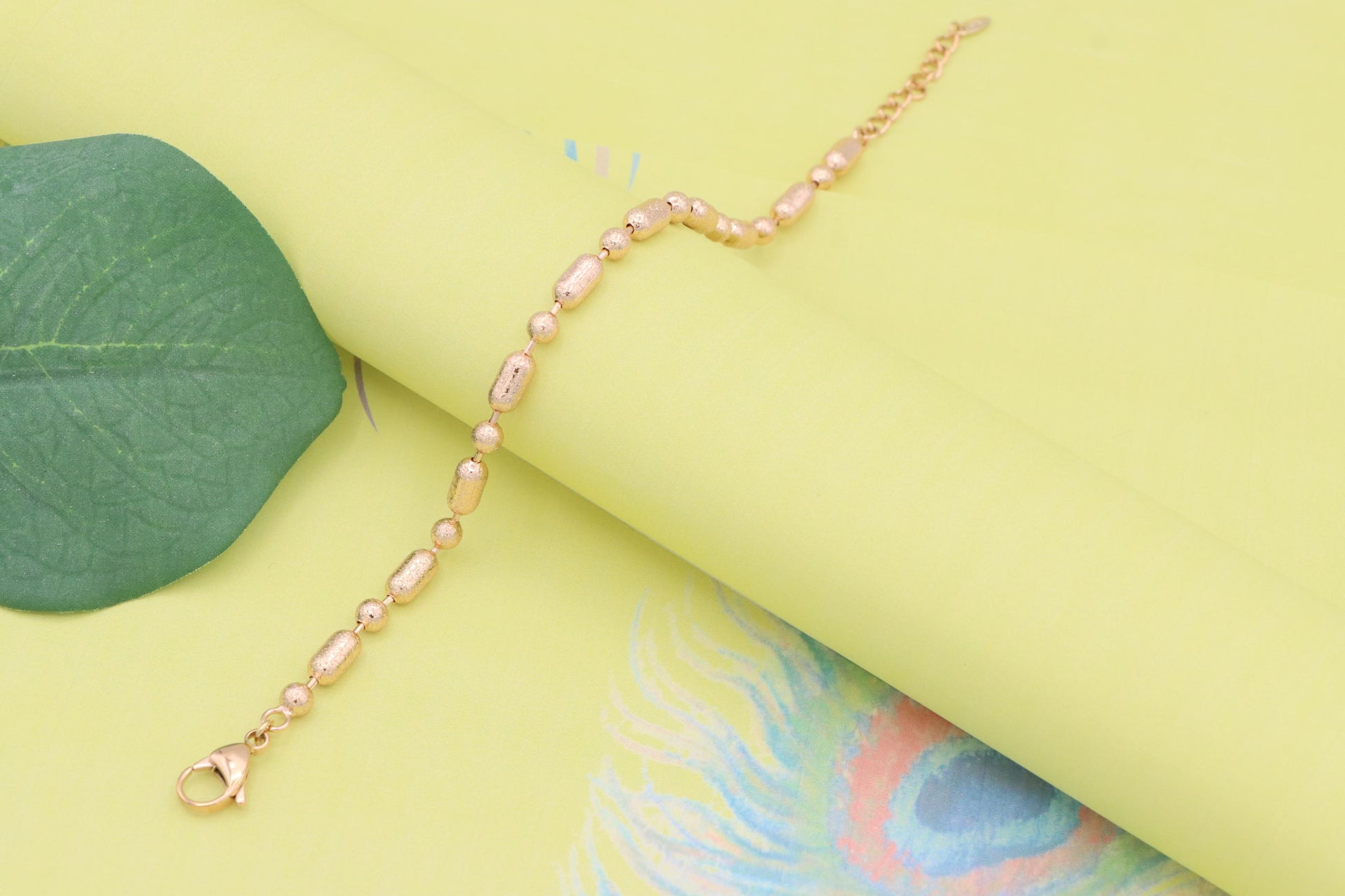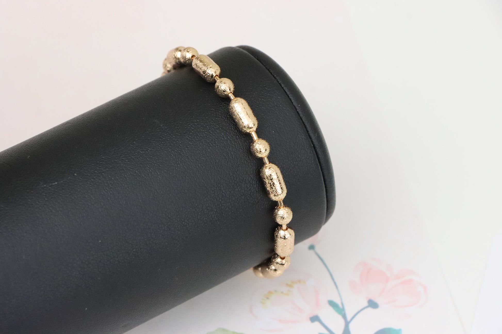 ✔ Elegant rose gold bracelet featuring textured oval and round beads