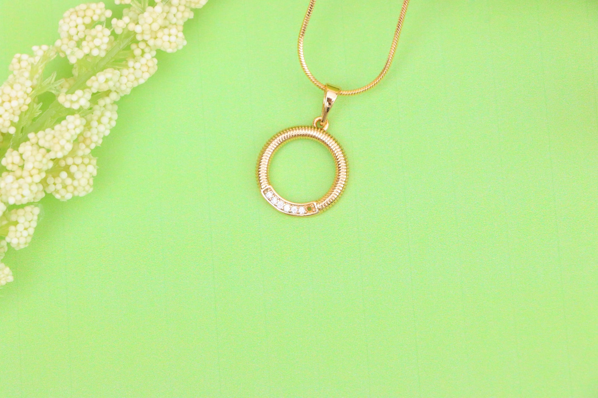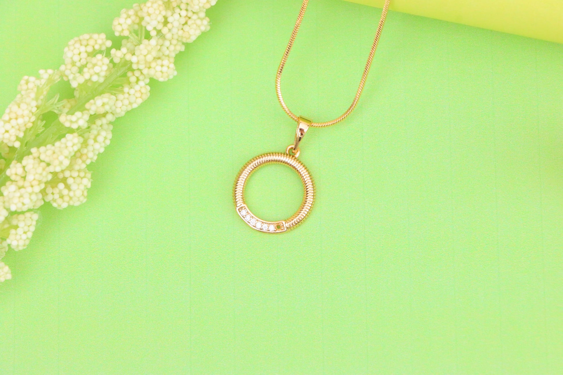 Minimal yet elegant rose gold circular pendant with a ridged design and sparkling crystal accents—ideal for modern, everyday styling.
