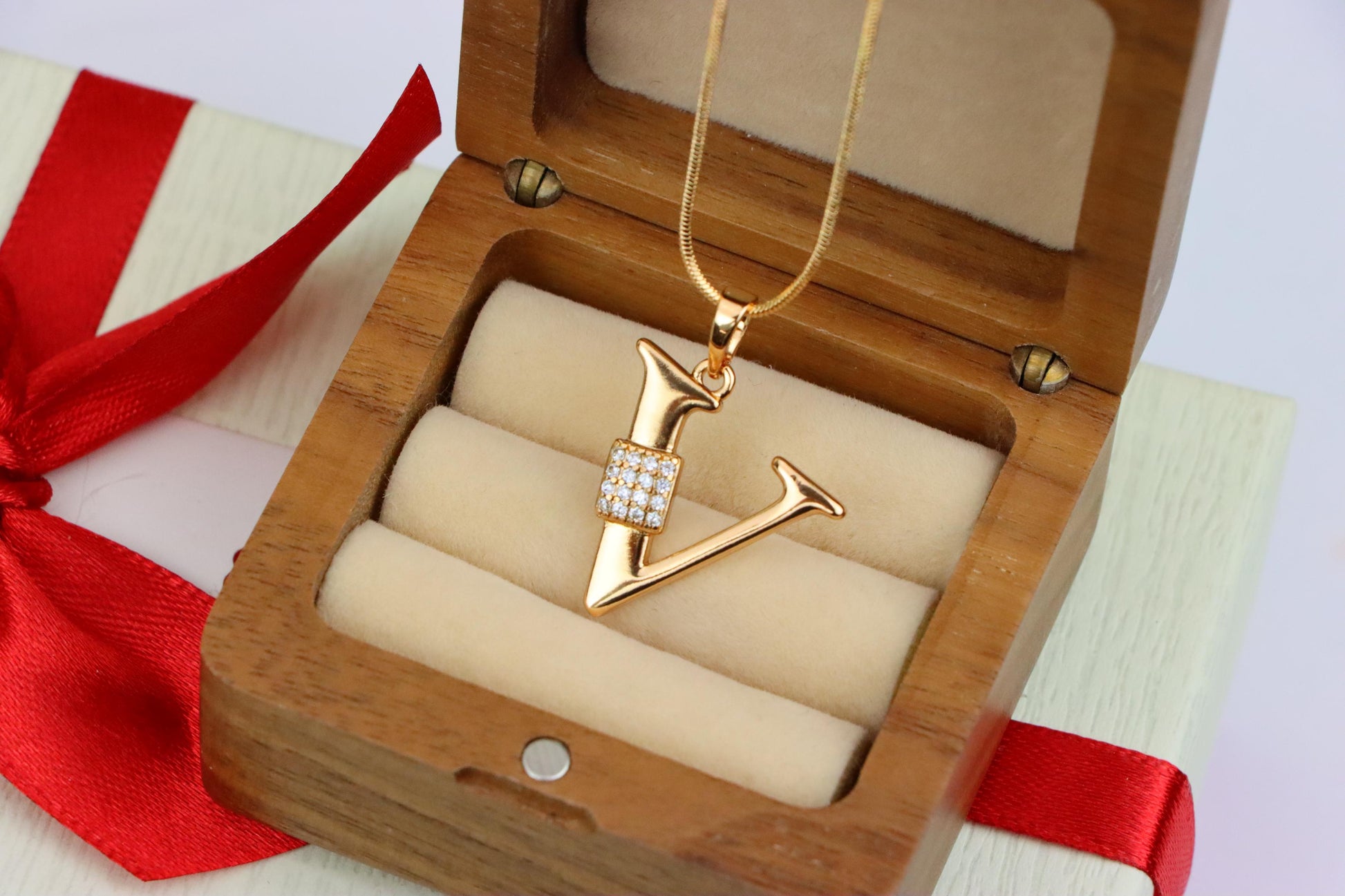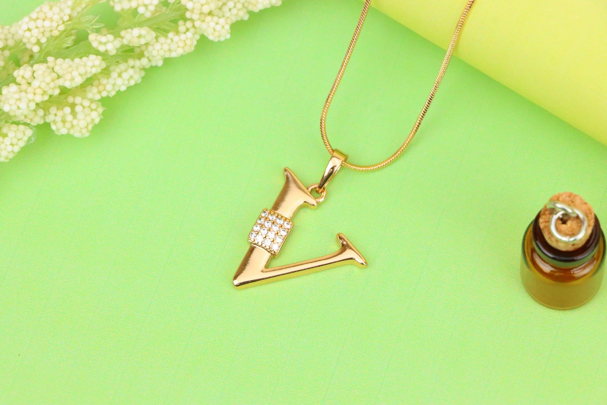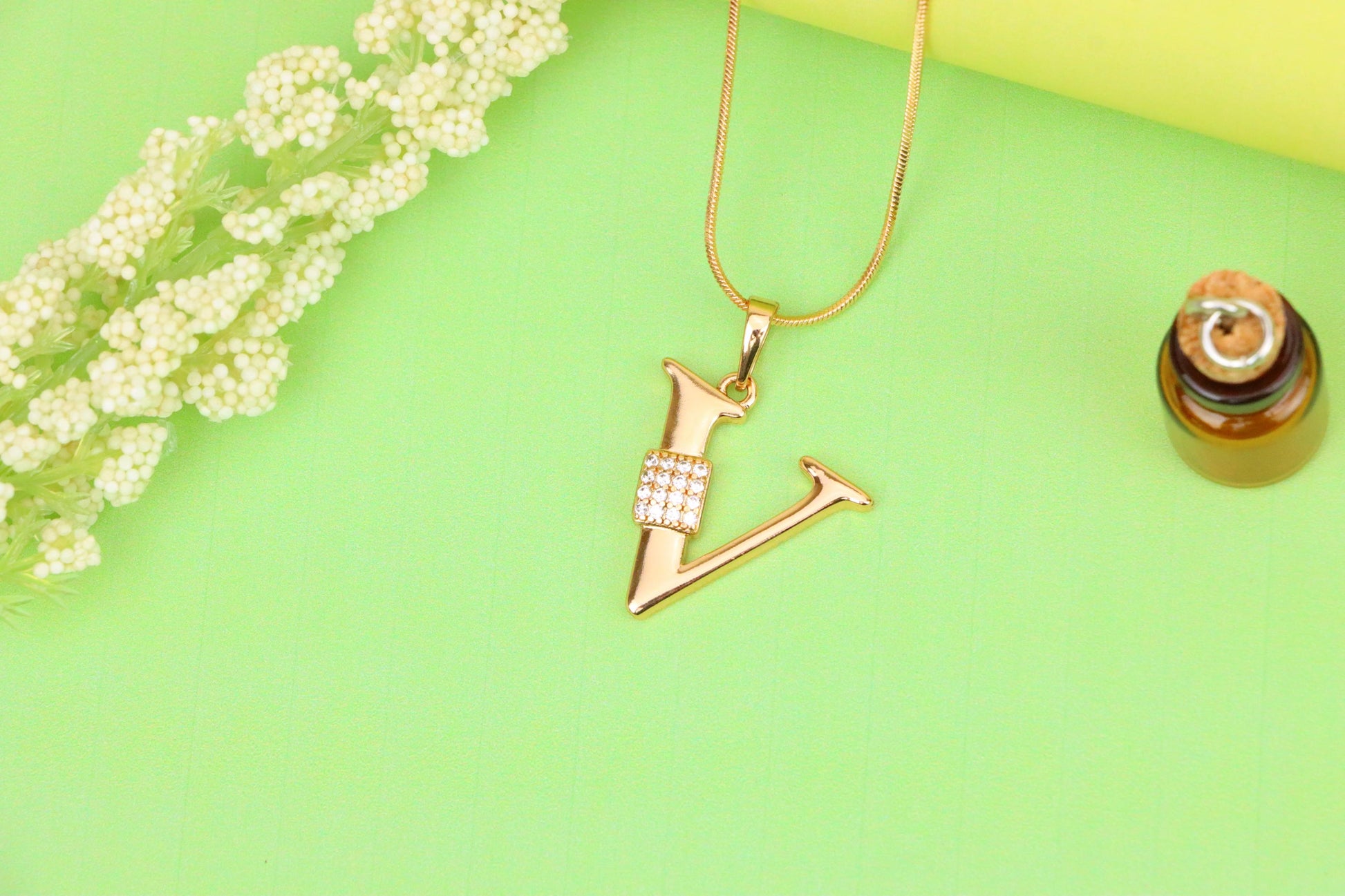 Graceful and trendy V initial pendant, perfect for adding a personal touch to your style.