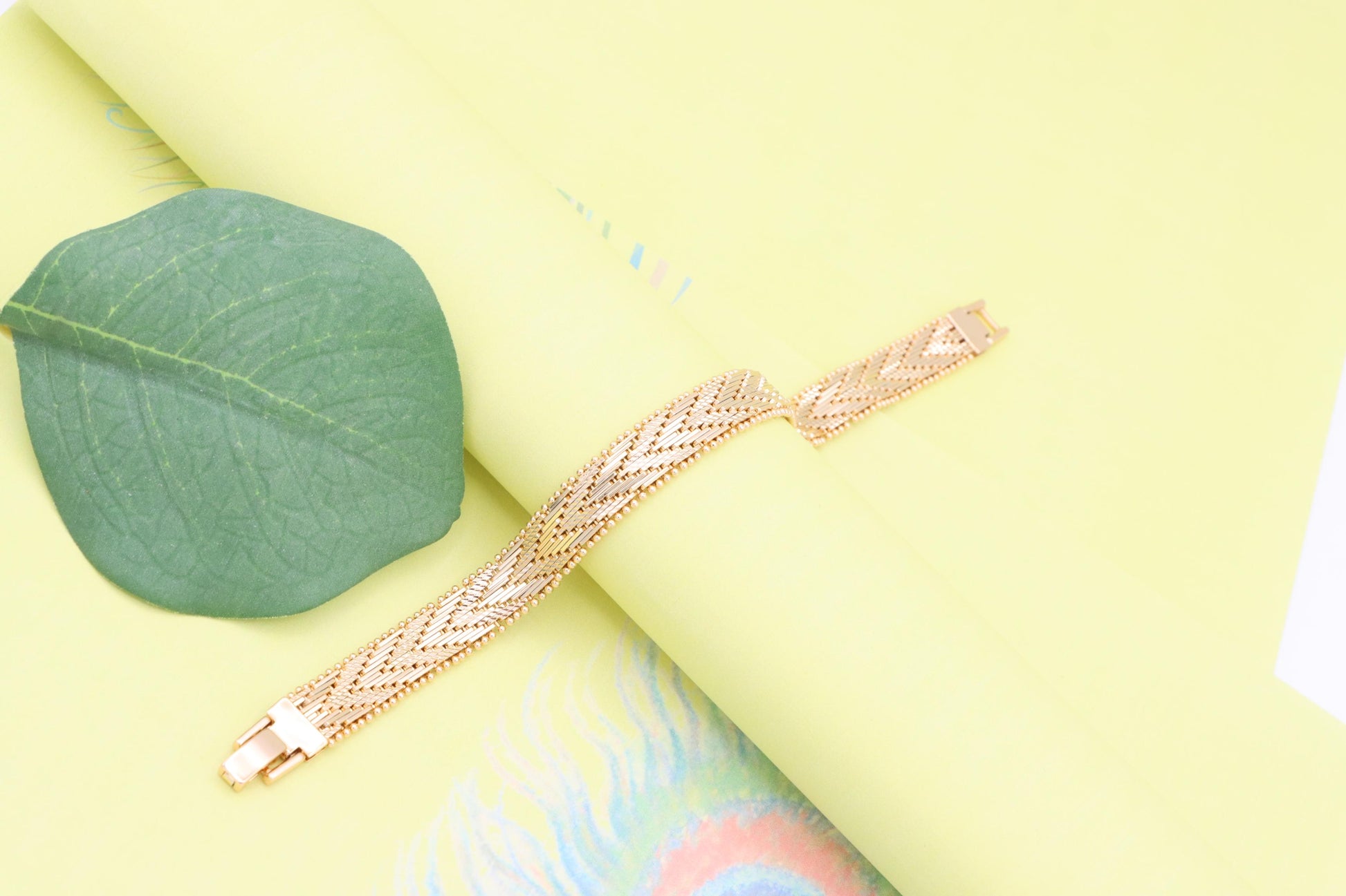 Rose Gold Woven Pattern Bracelet with Beaded Edge, XPBL1127