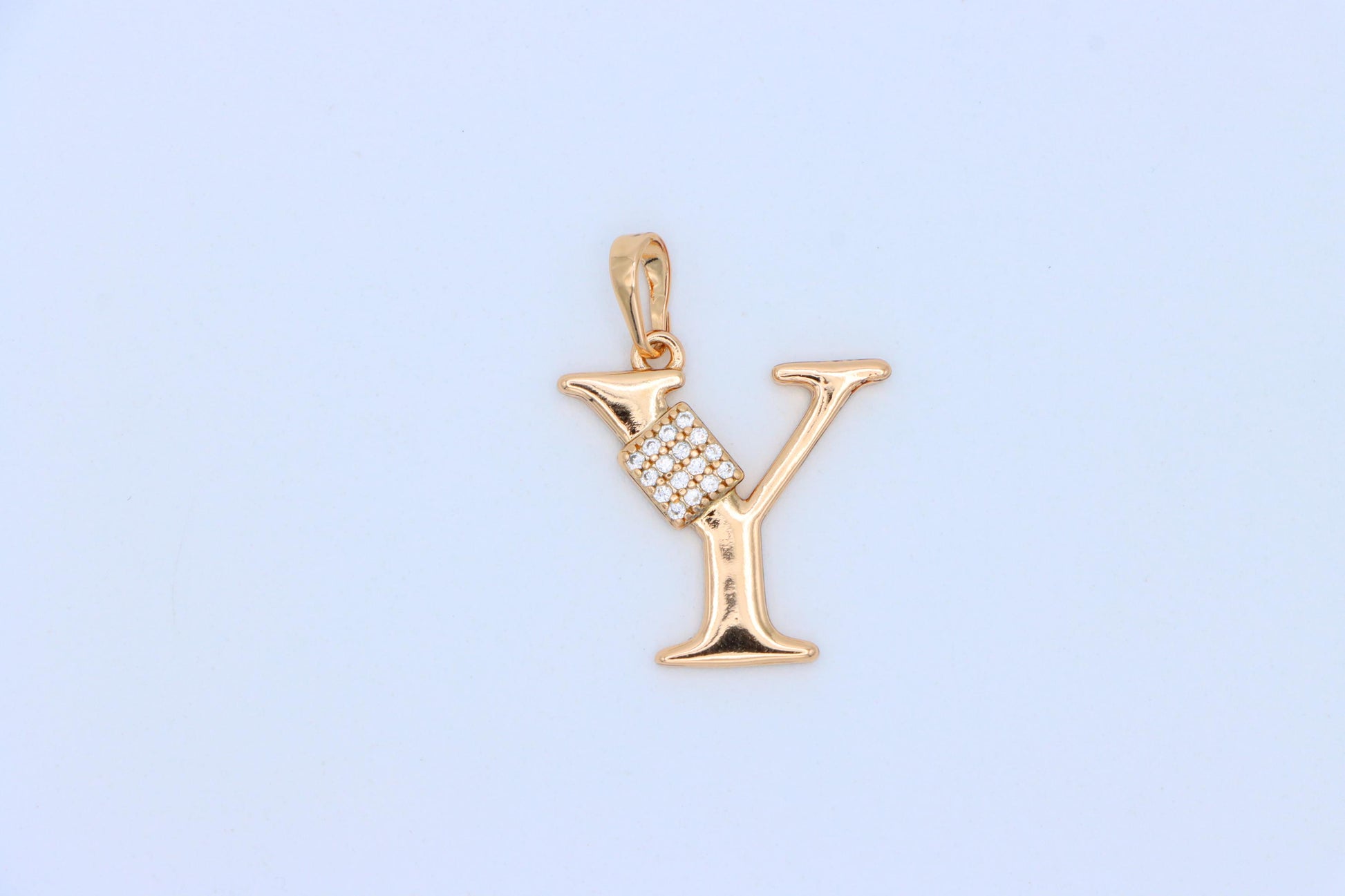 Rose Gold Y Initial Pendant with CZ Stones Elegant Jewelry,XPPT1436 (2136-1)
