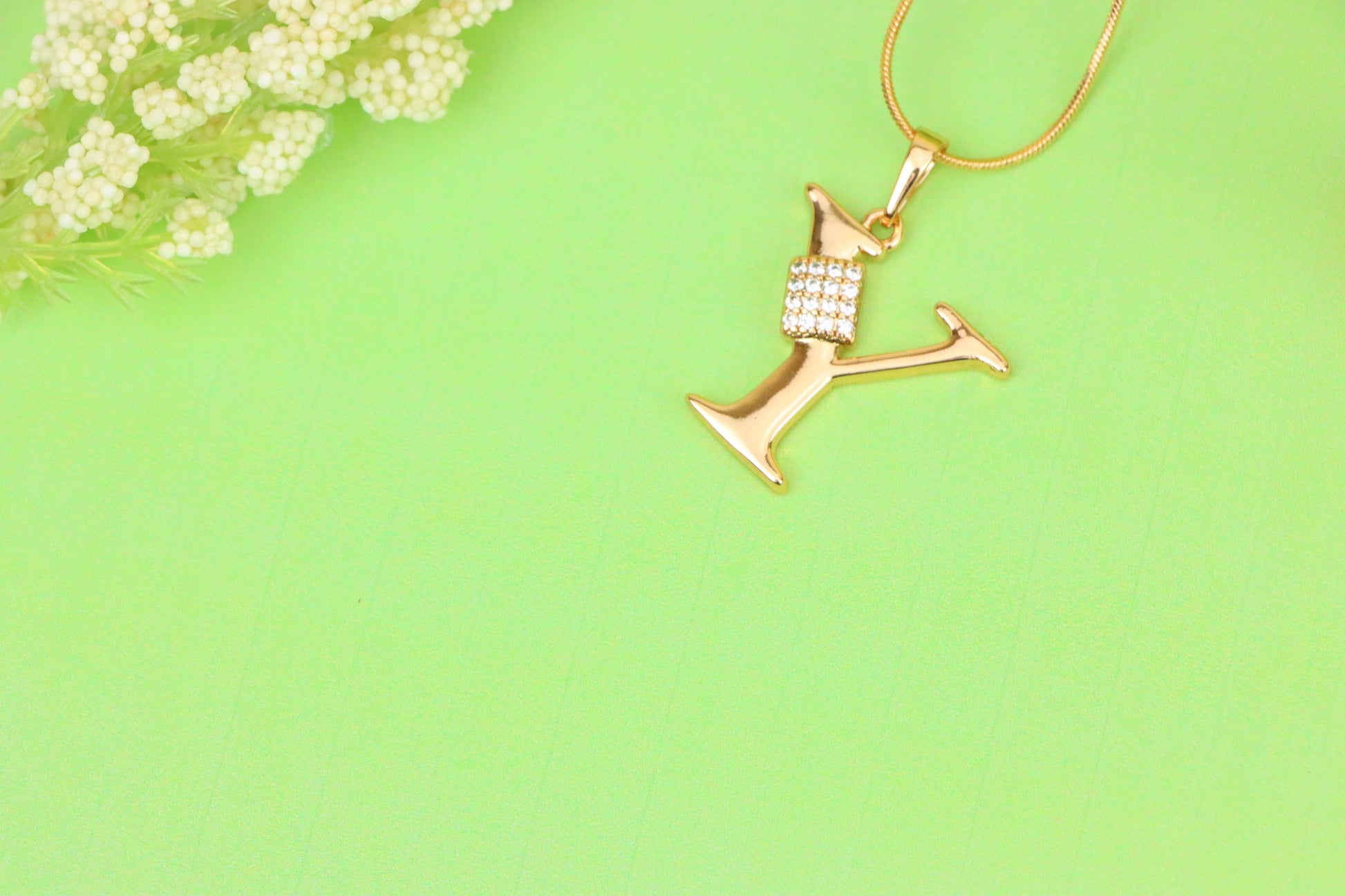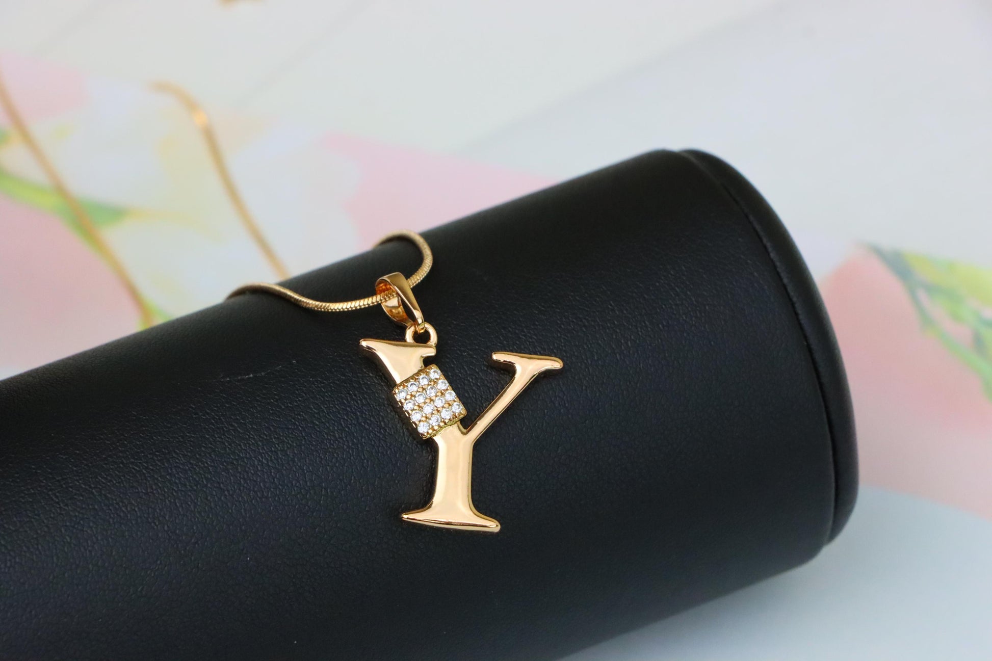 Rose Gold Y Initial Pendant with CZ Stones Elegant Jewelry,XPPT1436