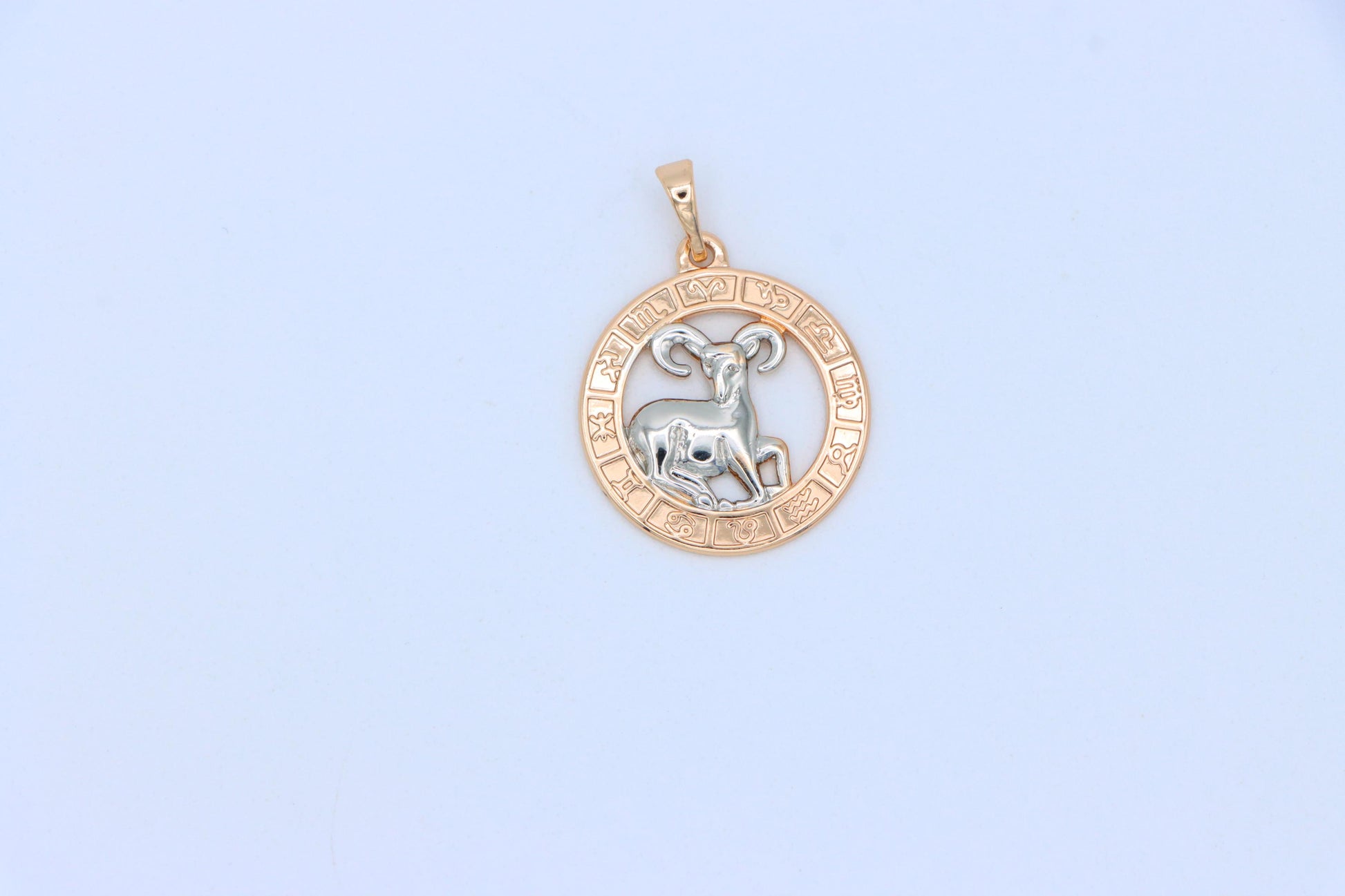 Rose Gold Zodiac Pendant with Ram Motif and Symbolic Border, XPPT1445