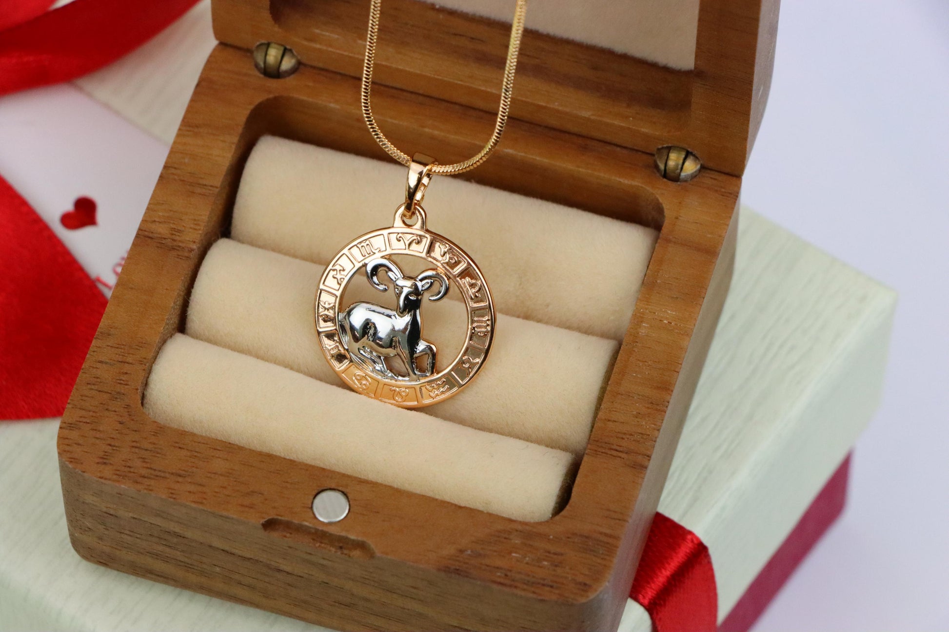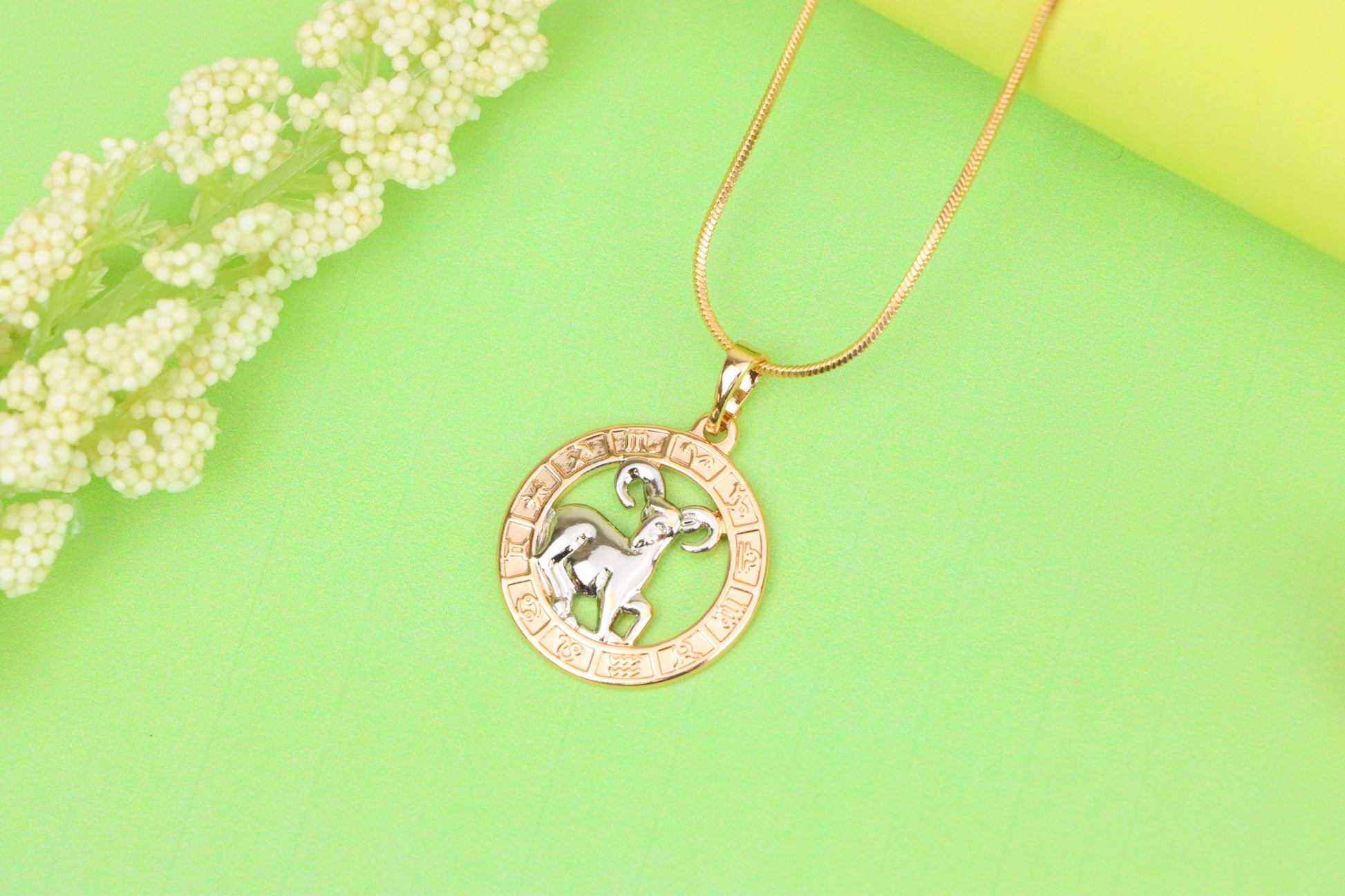 Showcase your astrological pride with this beautifully detailed rose gold pendant featuring a ram centerpiece, symbolizing the Aries zodiac sign.