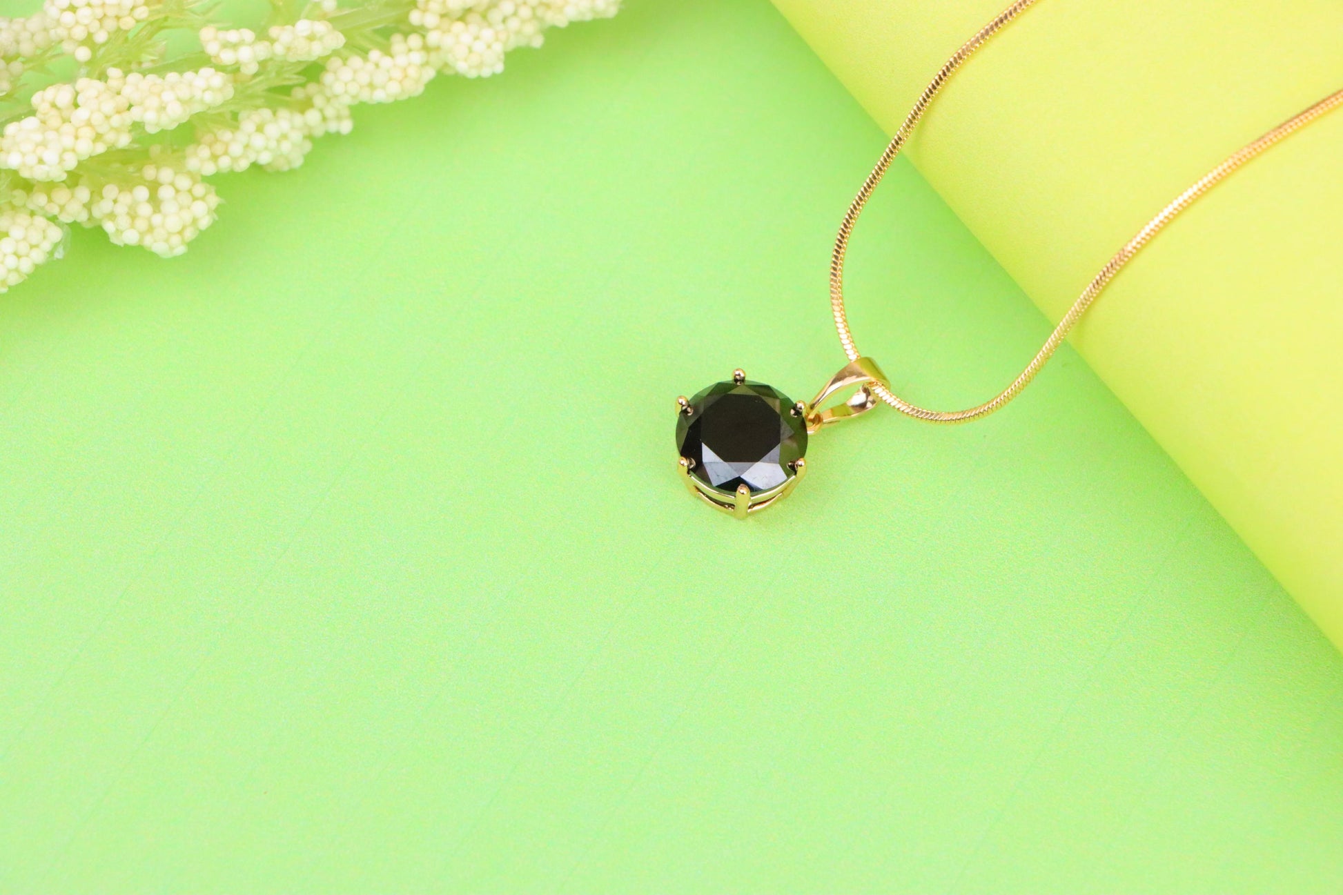 Timeless round pendant featuring a deep black stone and elegant shine.