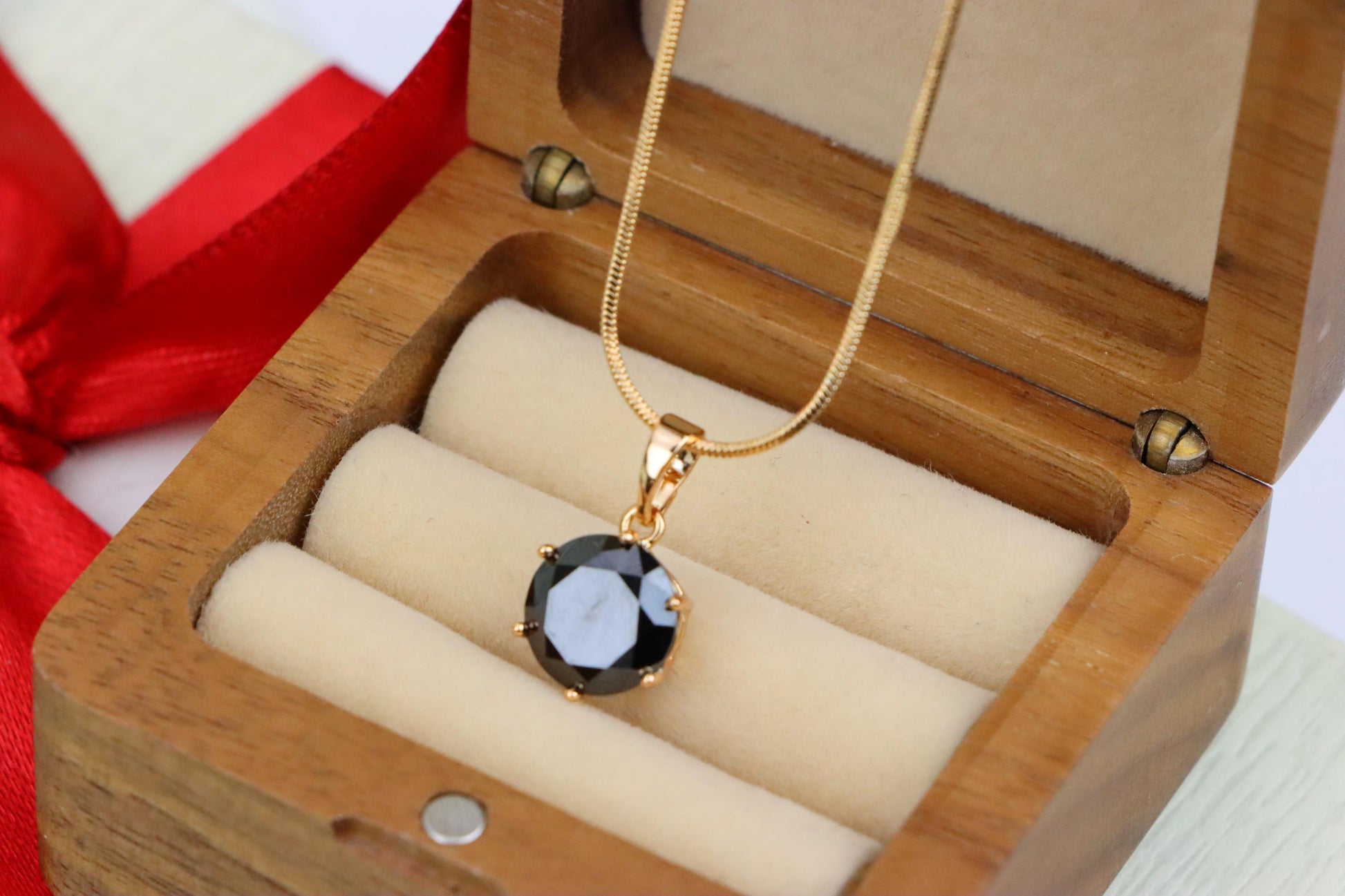 ✔️ Classic round-cut black stone with rich luster