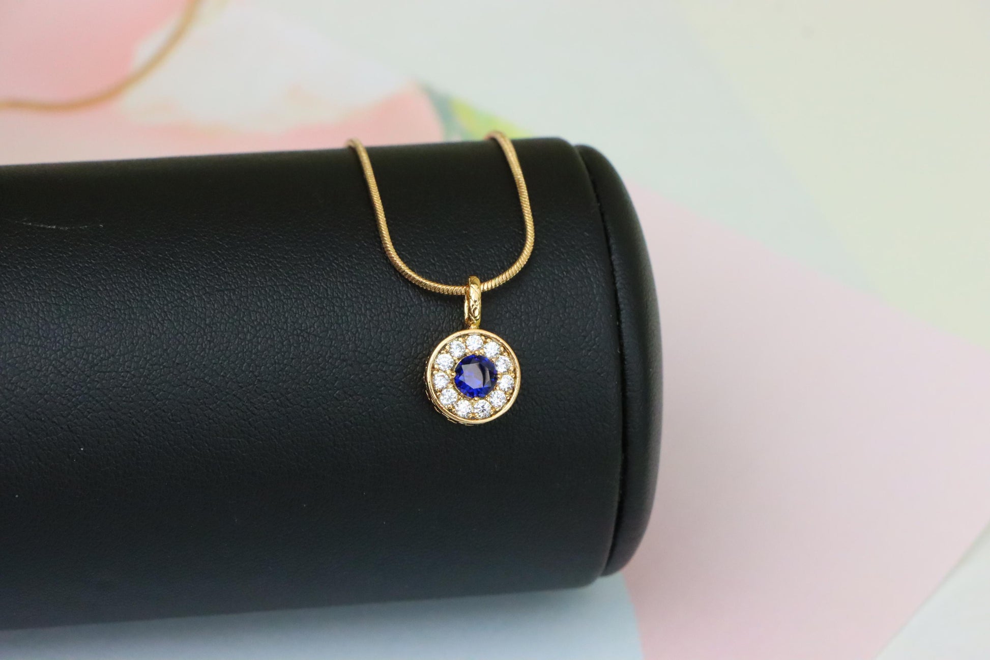 Round Blue Crystal Rose Gold Pendant with Sparkling Halo, XPPT1589