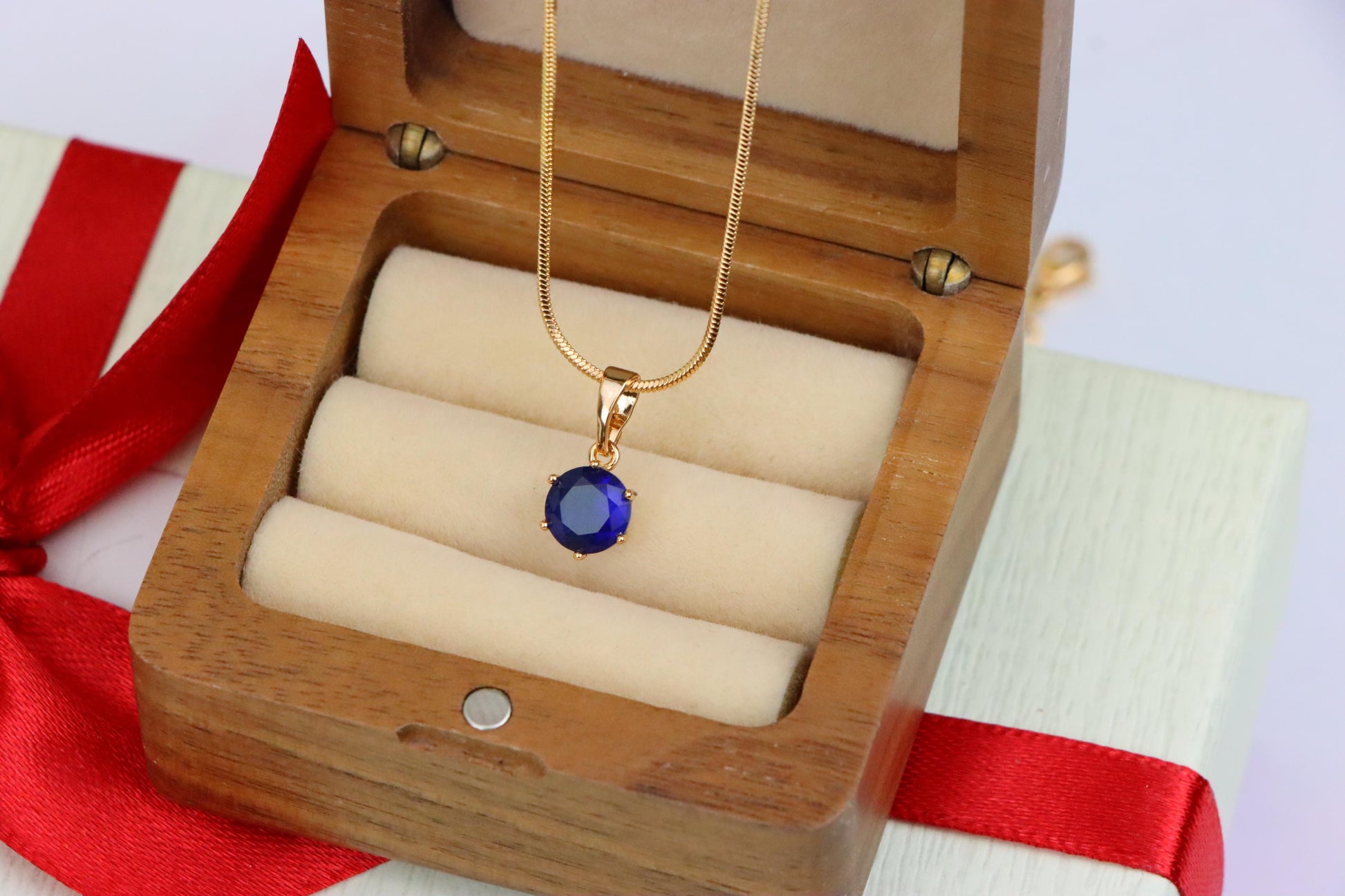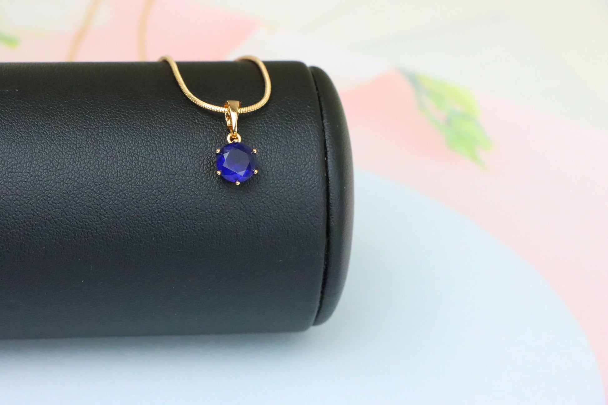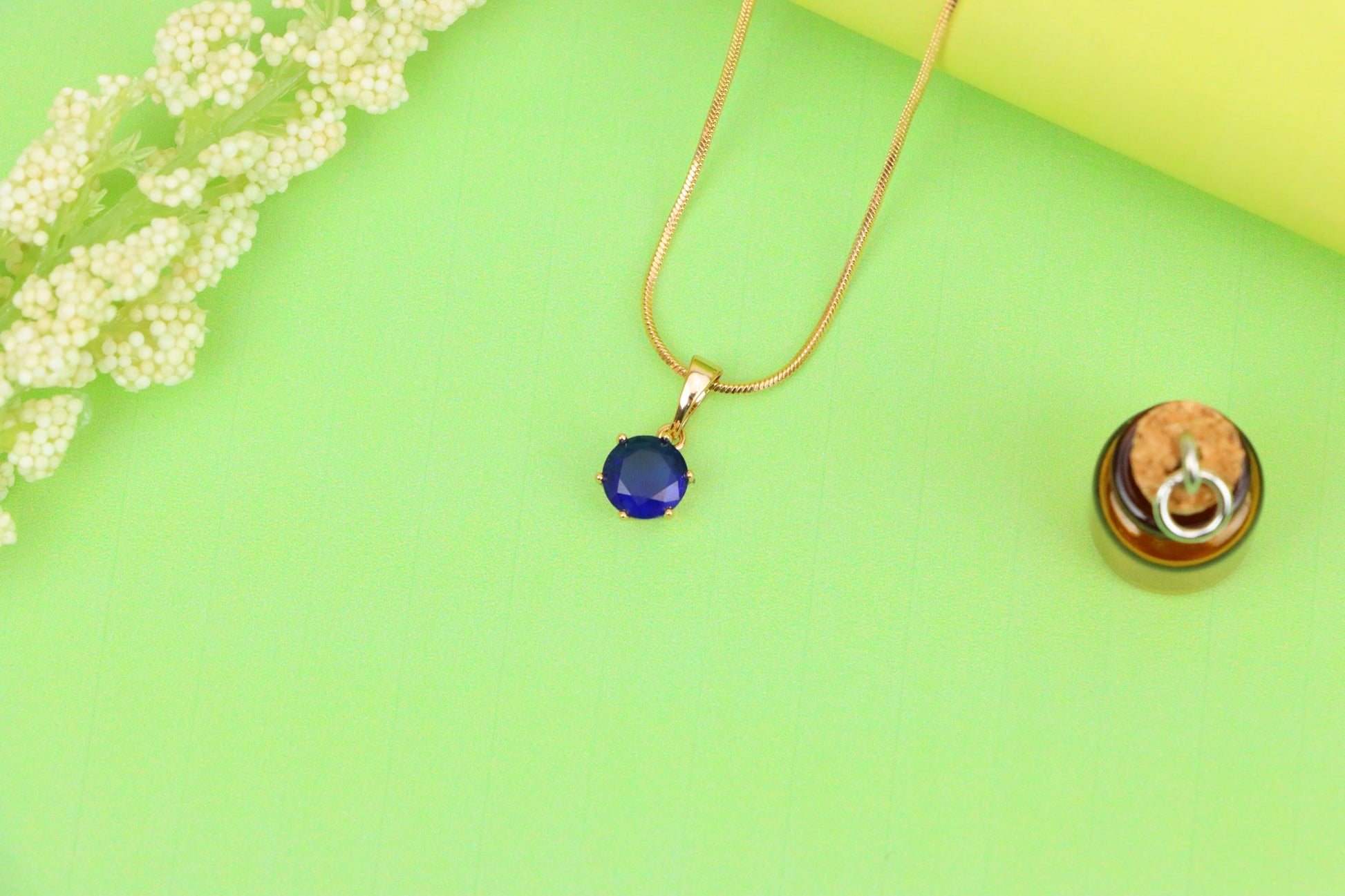 Round Blue Gemstone Pendant in Gold Finish – Simple Charm, XPPT1645 (2149-7)