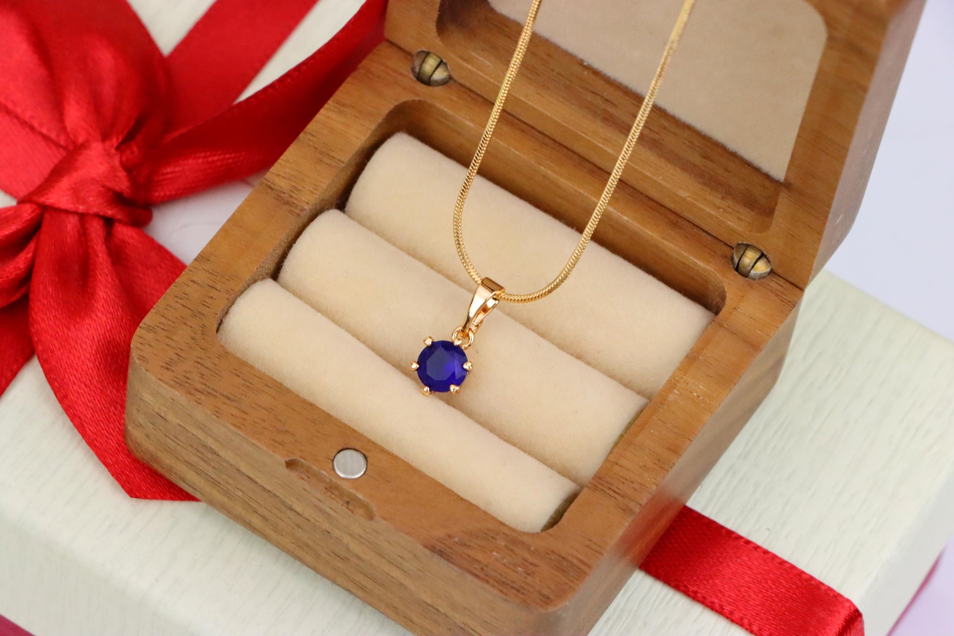Round Blue Pendant in Rose Gold Plating – Petite Charm, XPPT1851