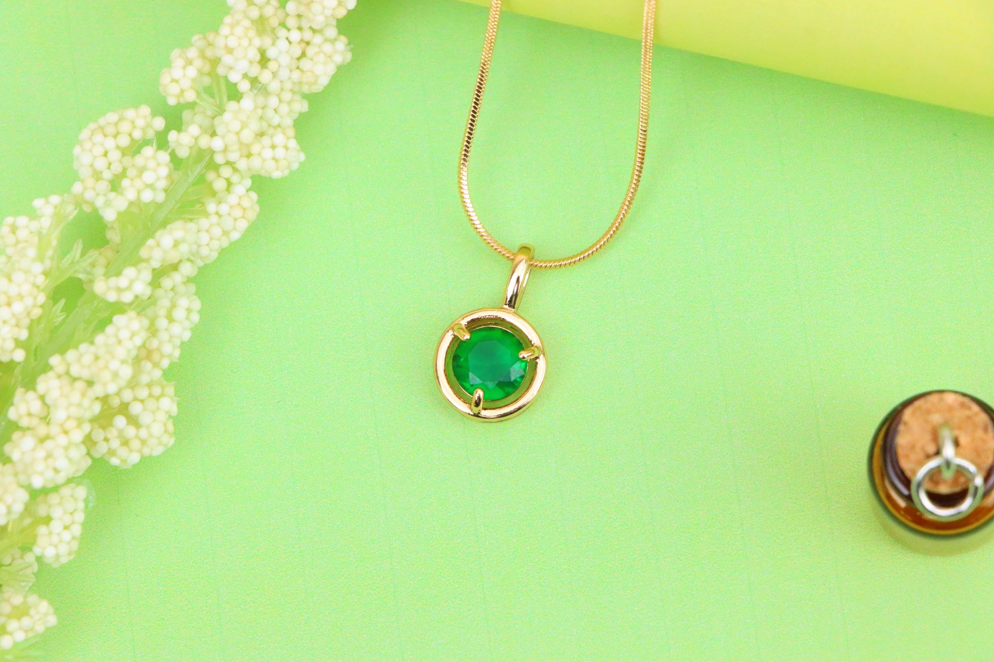 Round Green Crystal Pendant in Gold Plated Frame – Elegant Design, XPPT1701