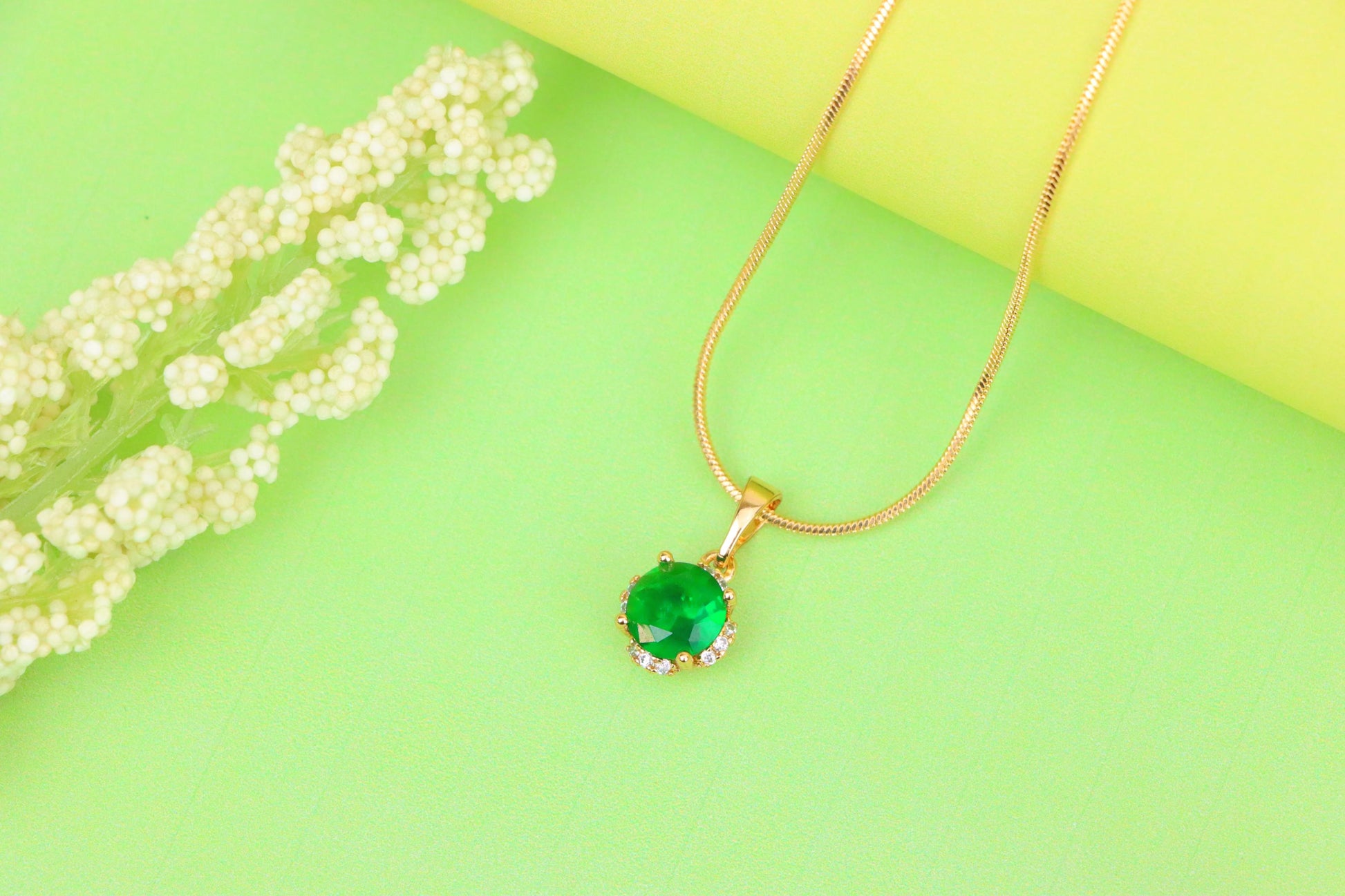 Round Green Gemstone Pendant in Rose Gold – Elegant & Versatile, XPPT1325