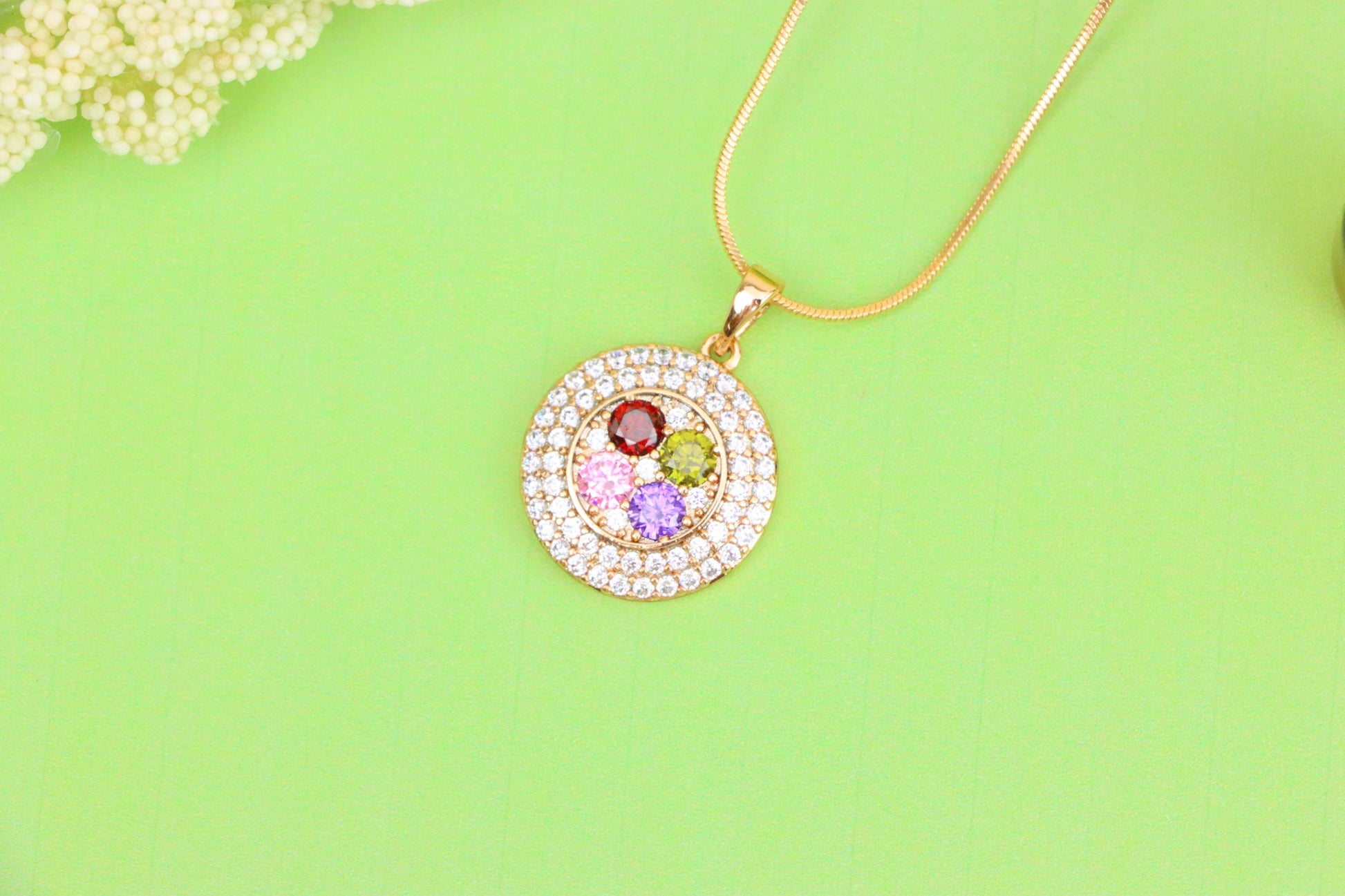 Round Multicolor CZ Pendant in Gold Finish – Dazzling Circle Design,XPPT1857