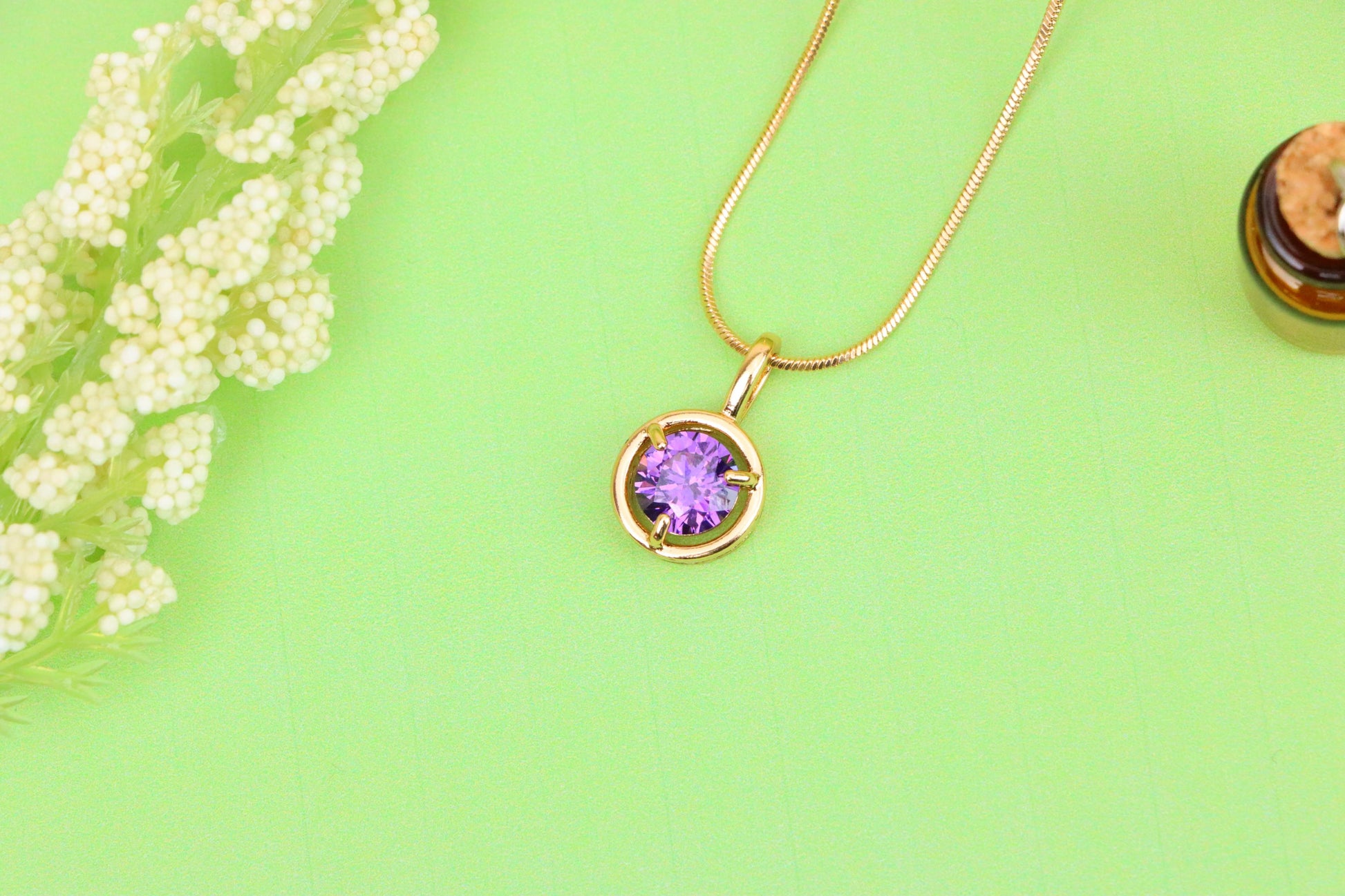 Round Purple Pendant with Gold Finish – Subtle Elegance for Daily Wear,XPPT1705 (2150-6)