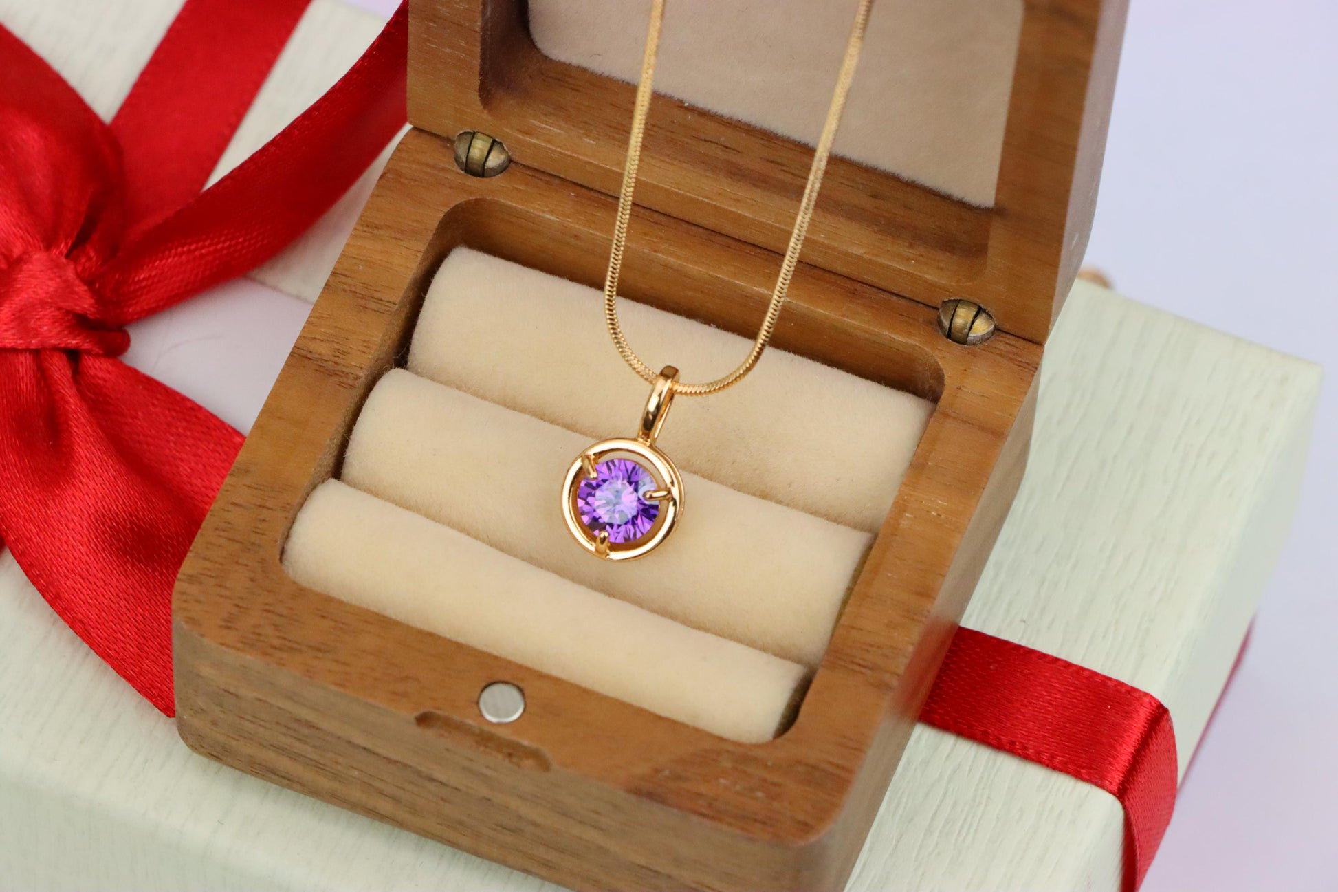 Round Purple Pendant with Gold Finish – Subtle Elegance for Daily Wear,XPPT1705