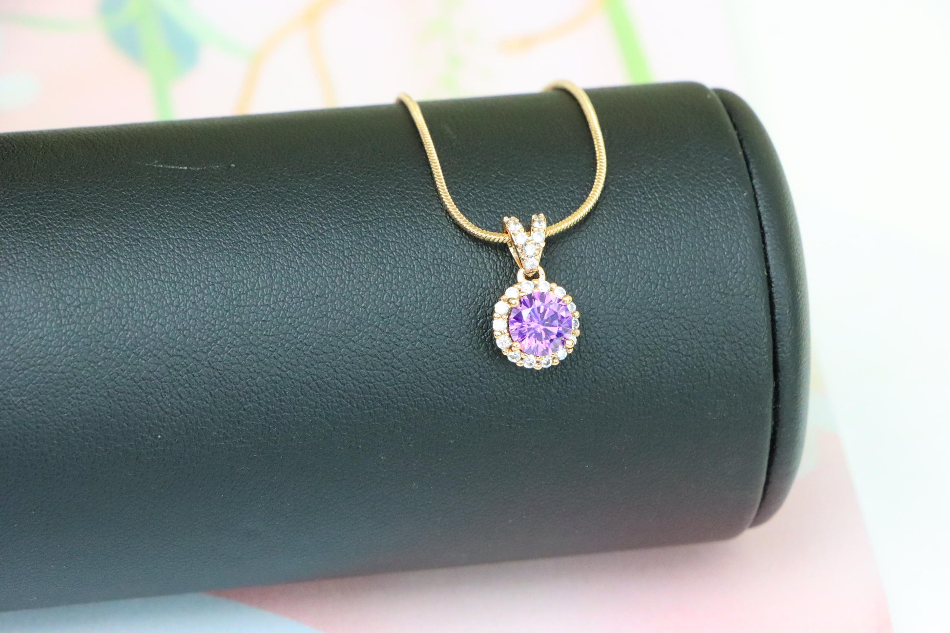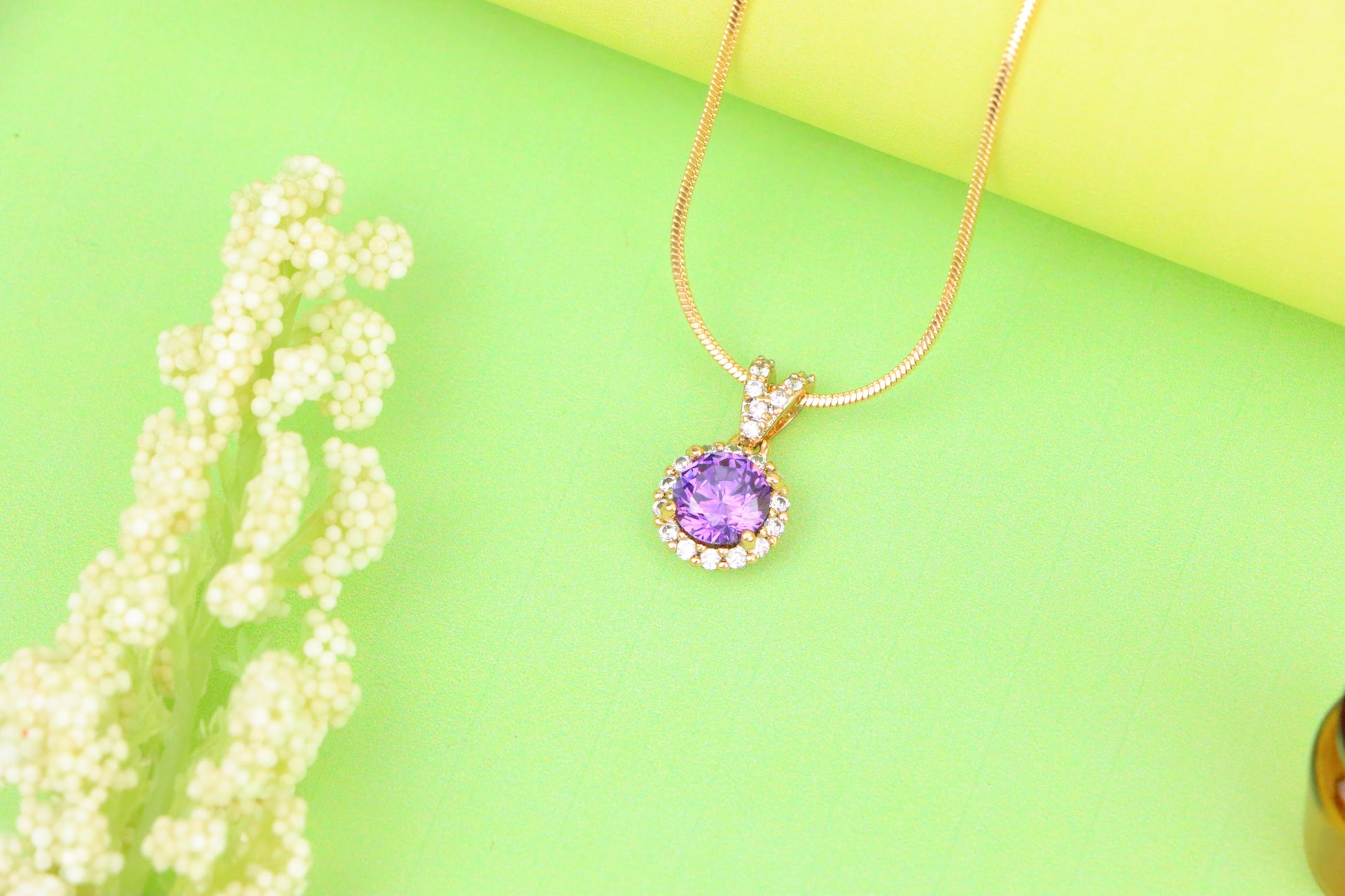 Round Purple Stone Rose Gold Pendant, XPPT1292