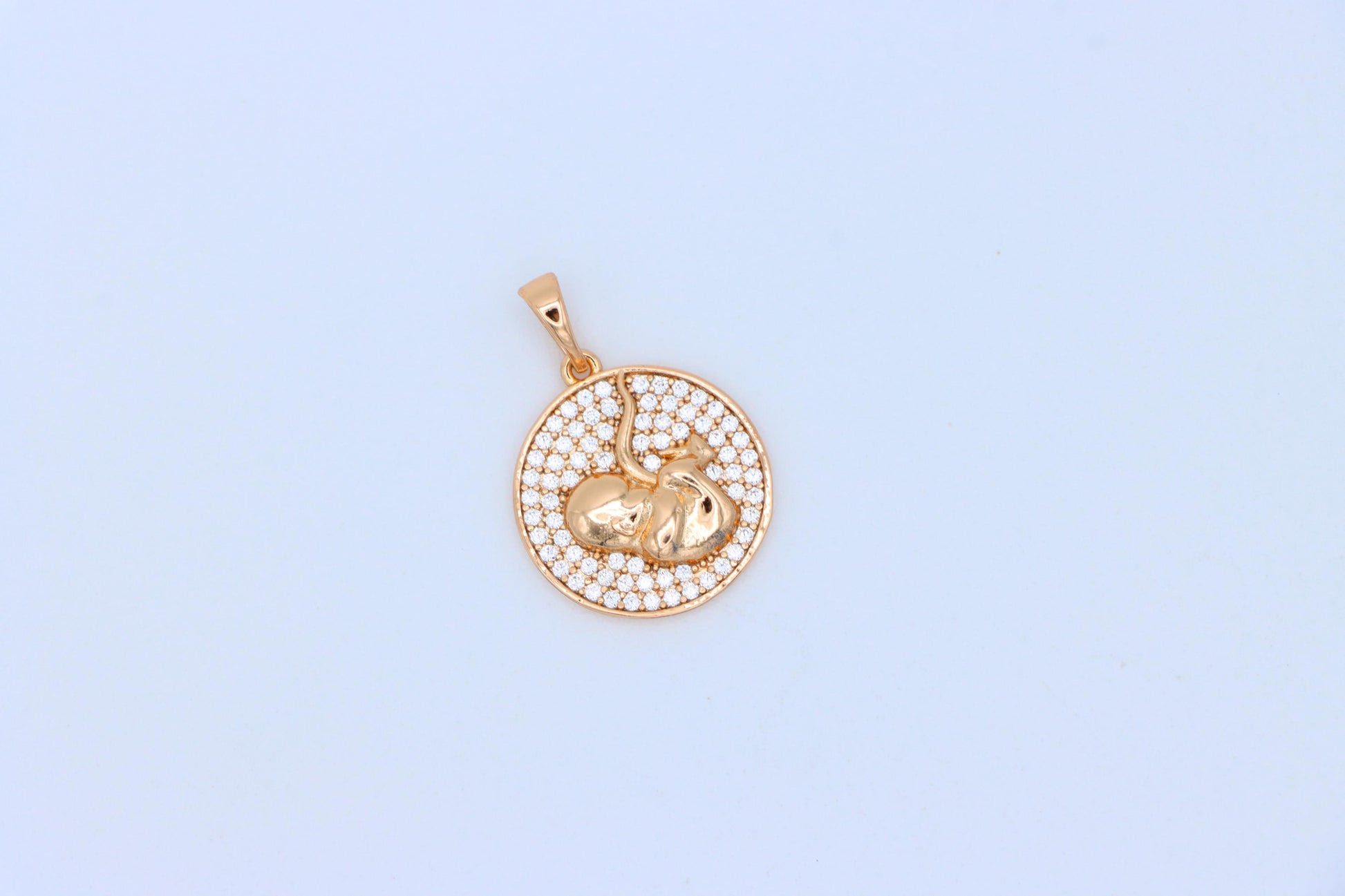 Round Rose Gold Pendant with Crystal Border and Cat Design Center, XPPT1604