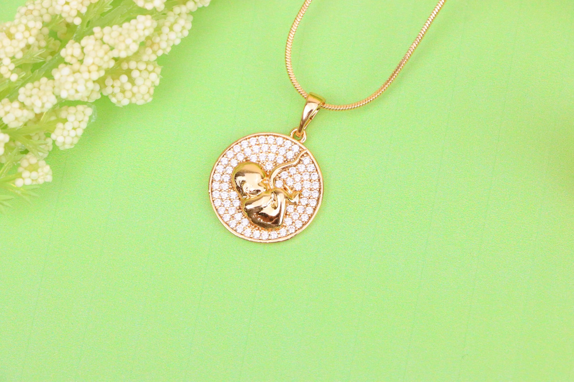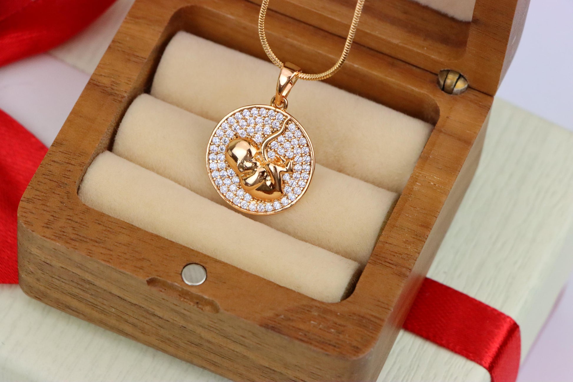 Charming rose gold pendant with a glittering backdrop and cat motif.