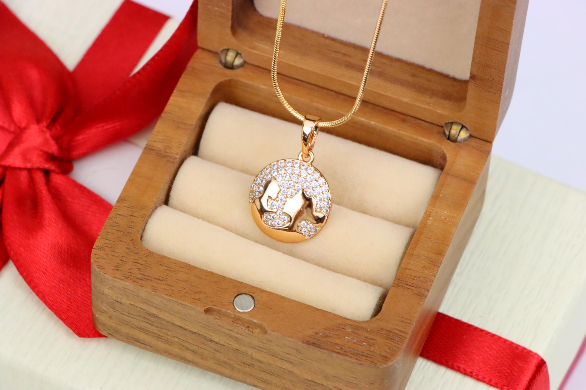 Round Rose Gold Pendant with Crystal World Map Design, XPPT1835