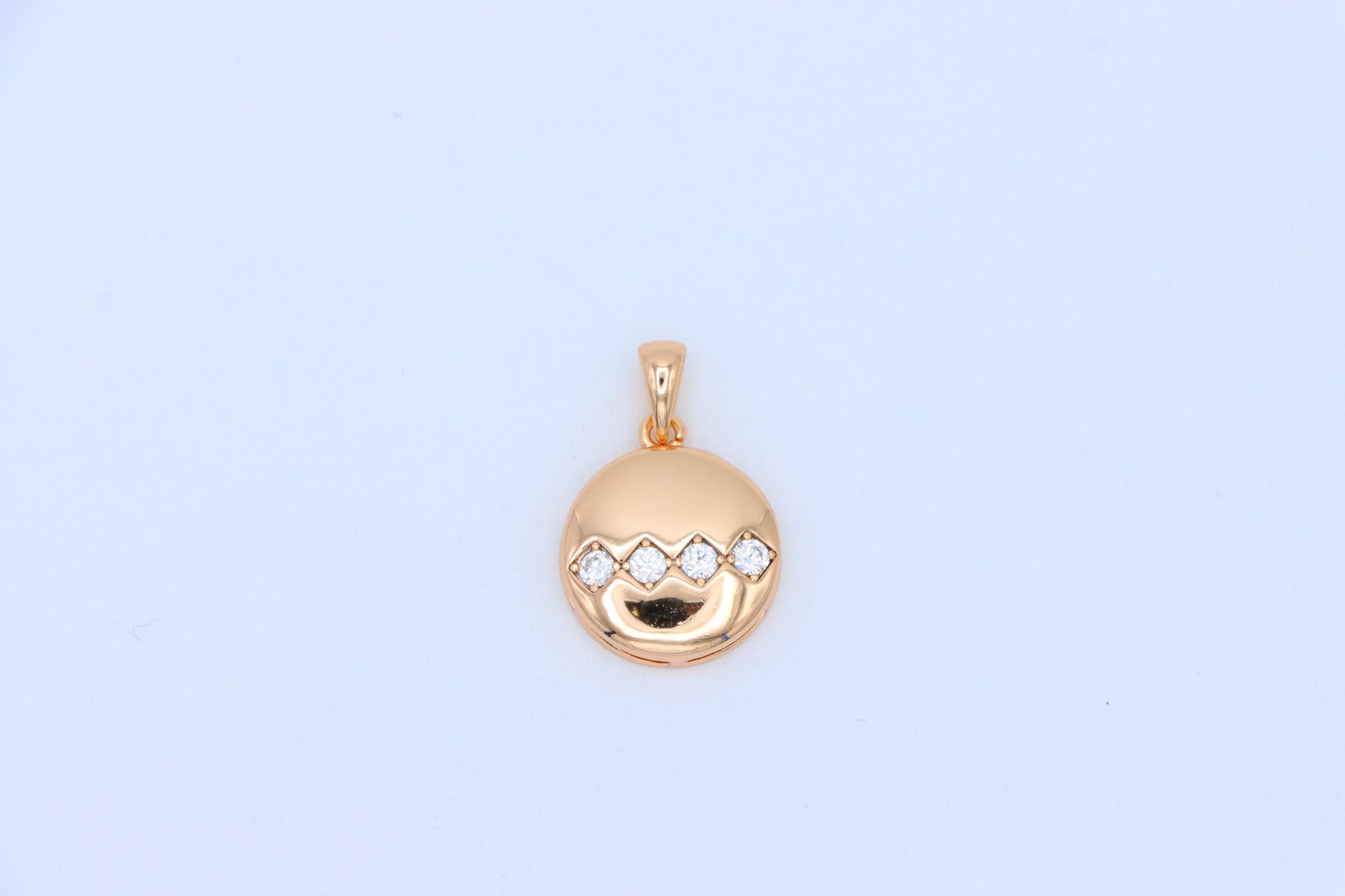 Round Rose Gold Pendant with Zigzag White Crystal Accent Design, XPPT1255