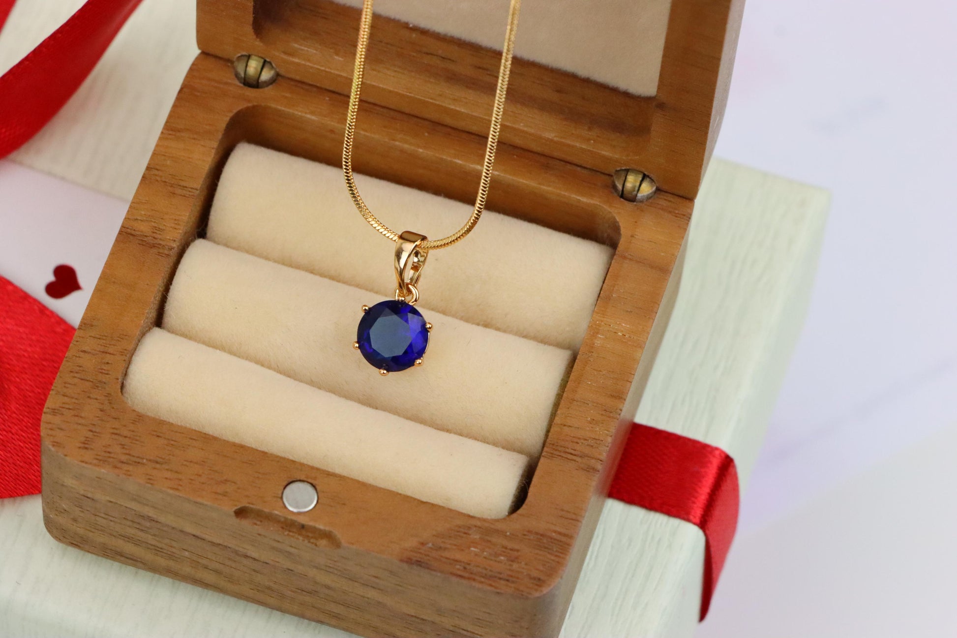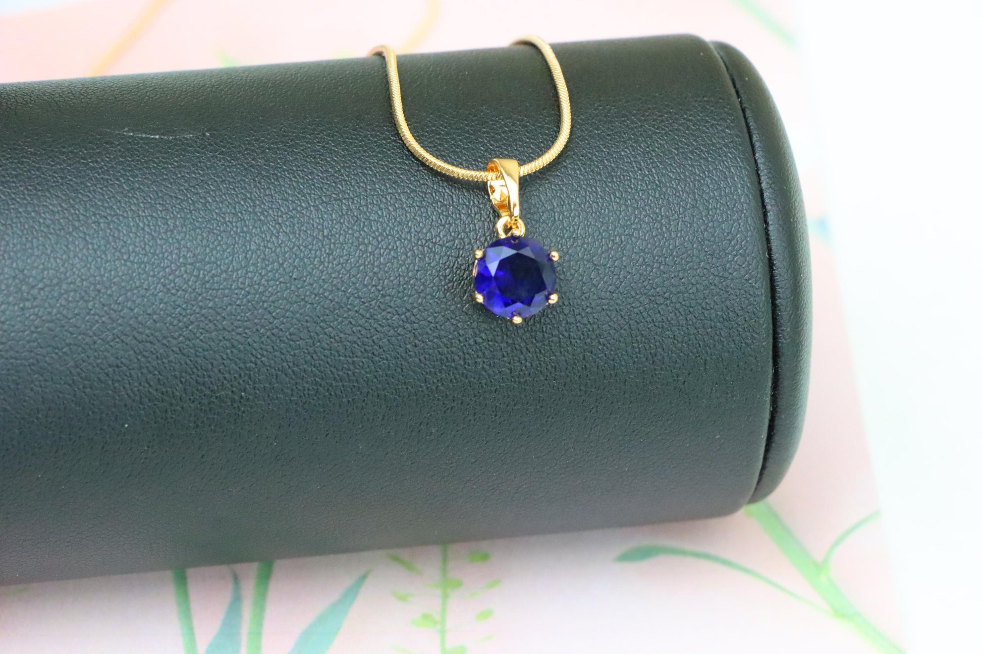 Royal Blue Round Pendant in Gold Finish for Elegant Everyday Style, XPPT1677