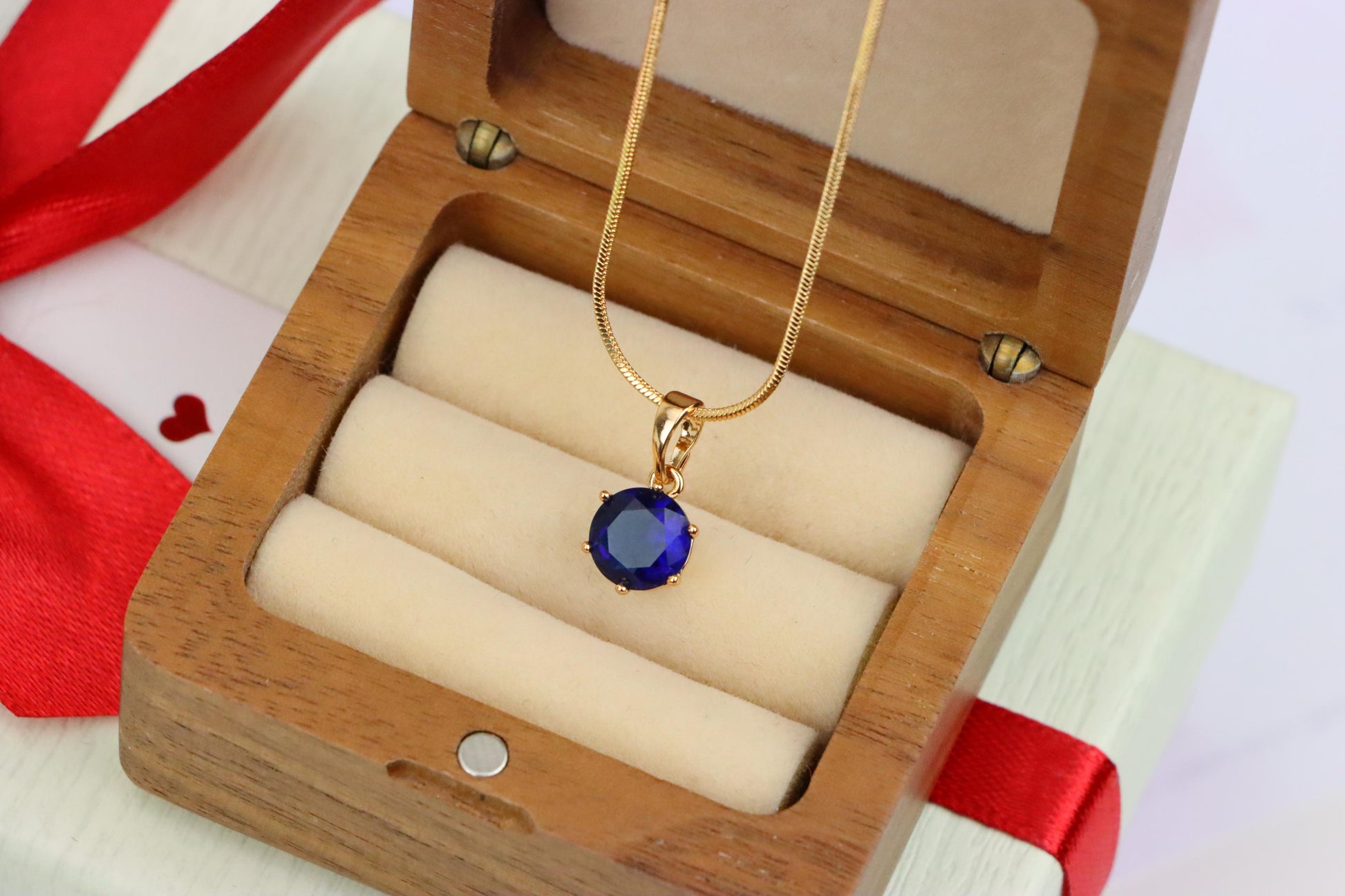 Royal Blue Round Pendant in Gold Finish for Elegant Everyday Style, XPPT1677 (2164-2)
