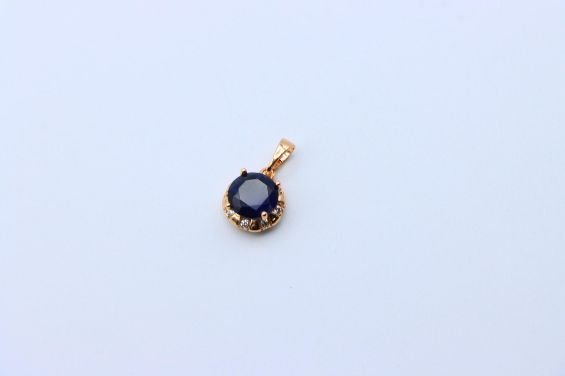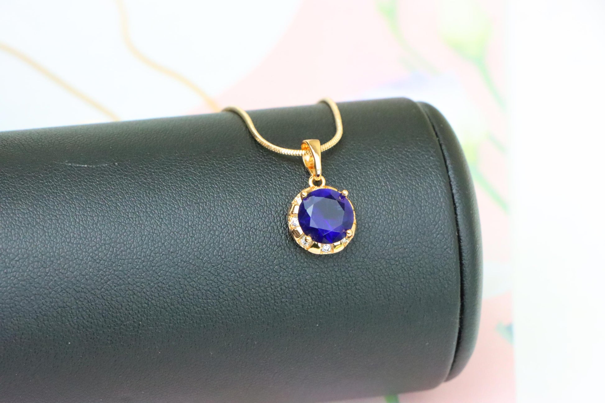 Royal Blue Round Pendant with Sparkling Accents in Gold Finish, XPPT1647 (2163-3)