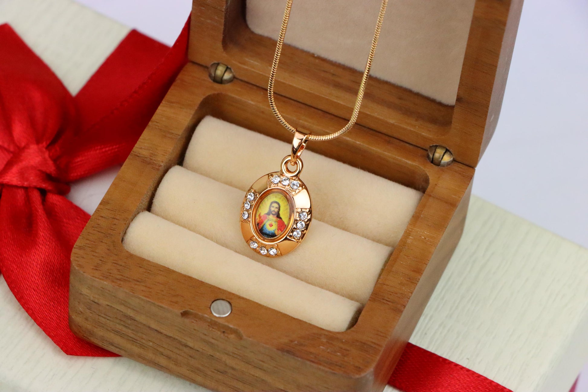 Sacred Heart Rose Gold Pendant with Crystals – Religious Jewelry, XPPT1737