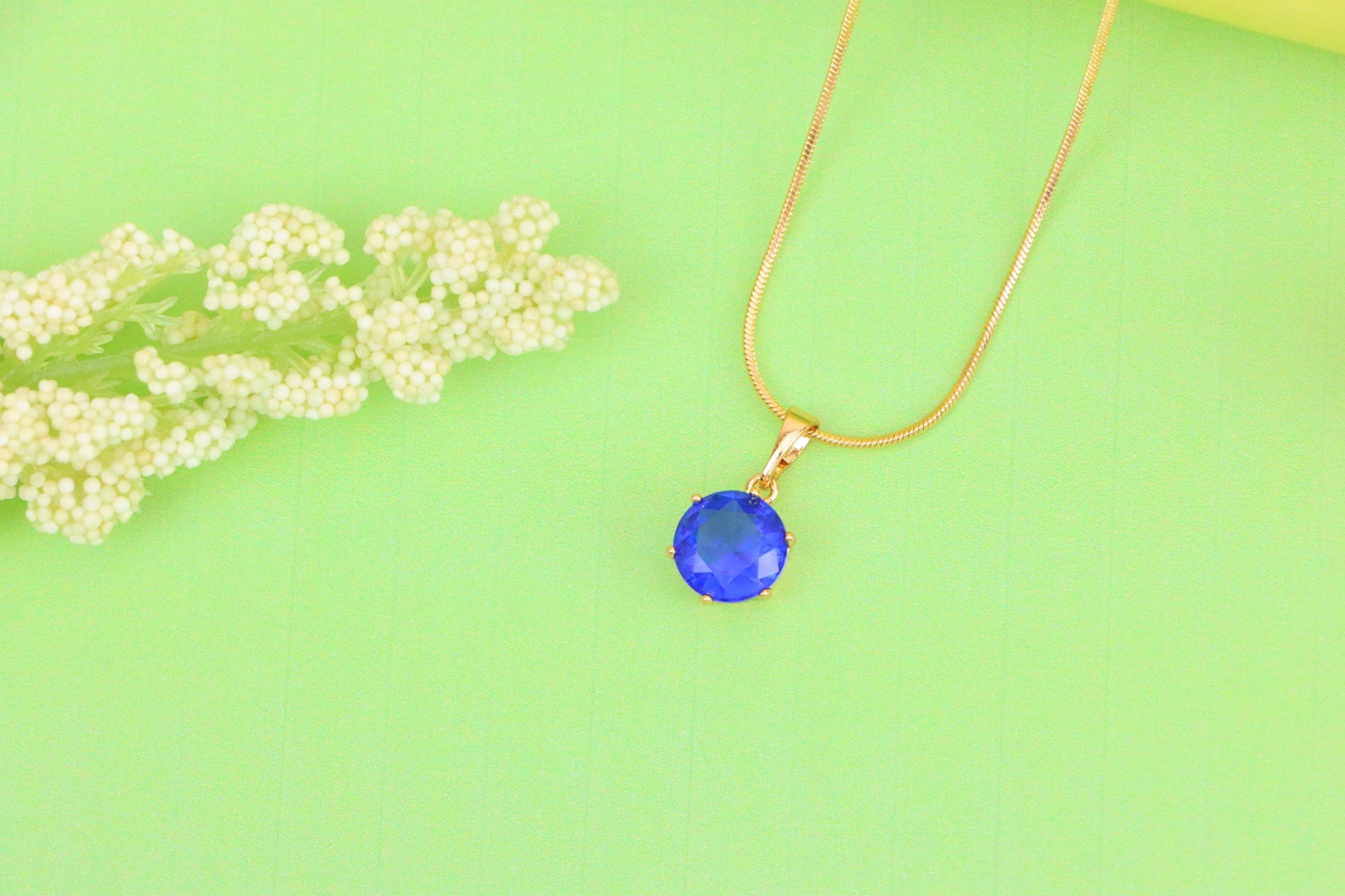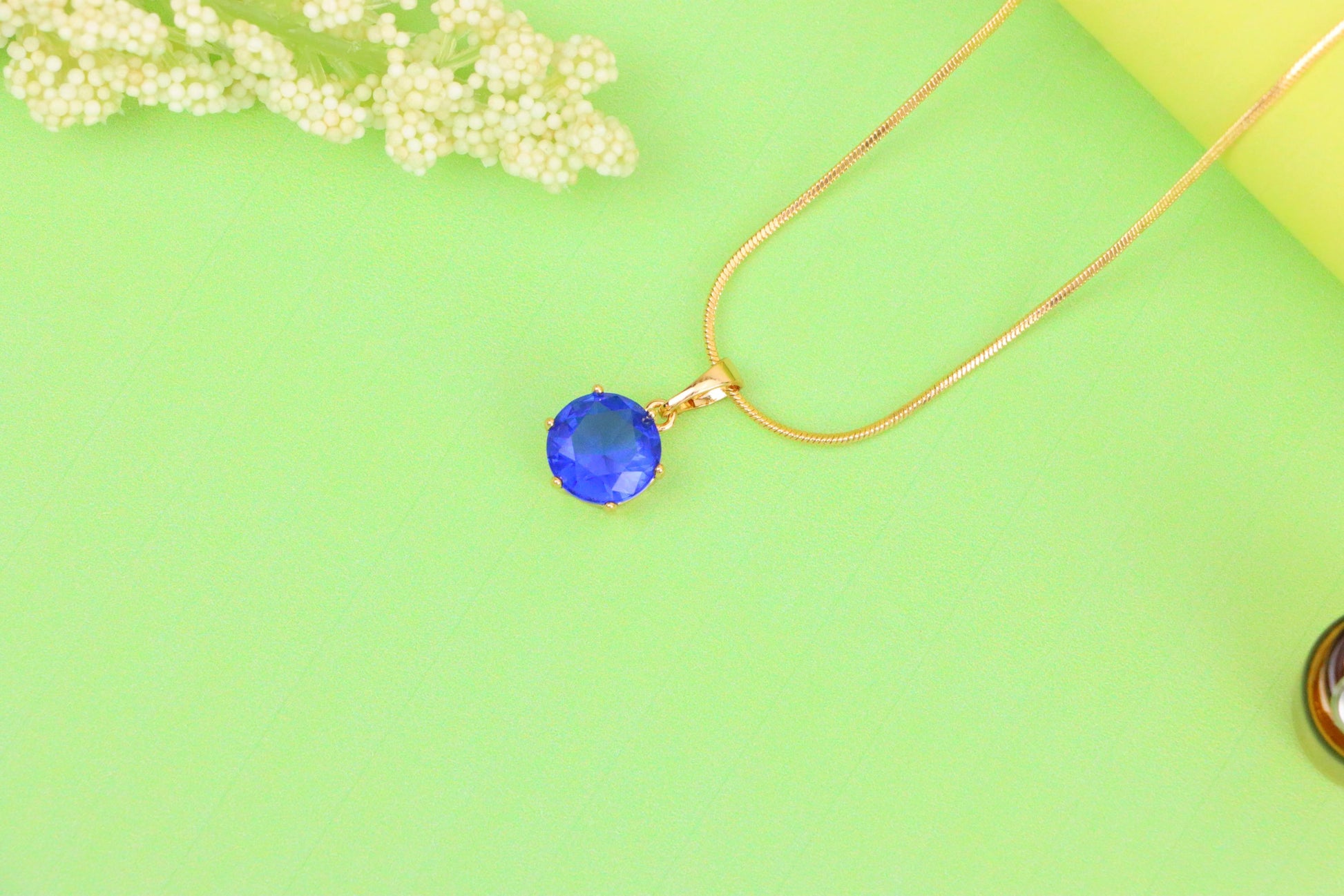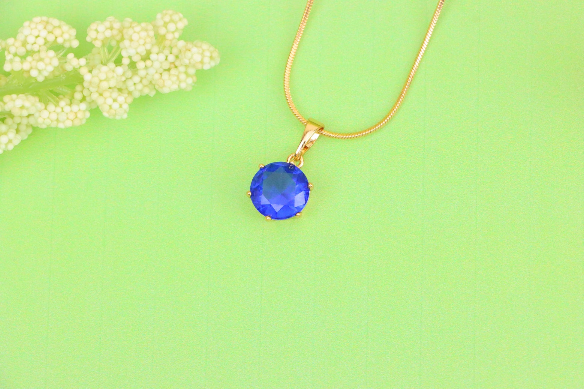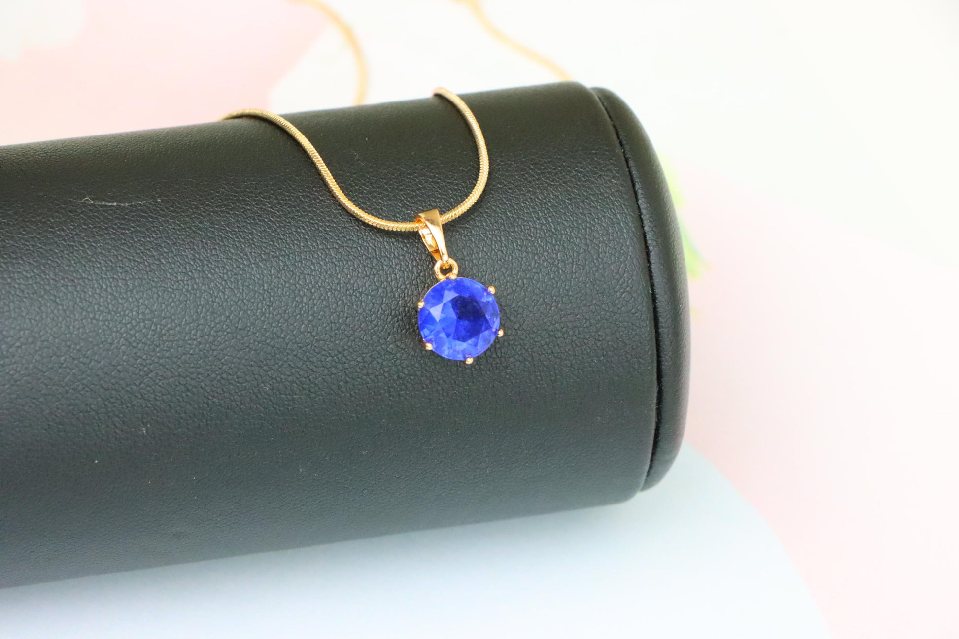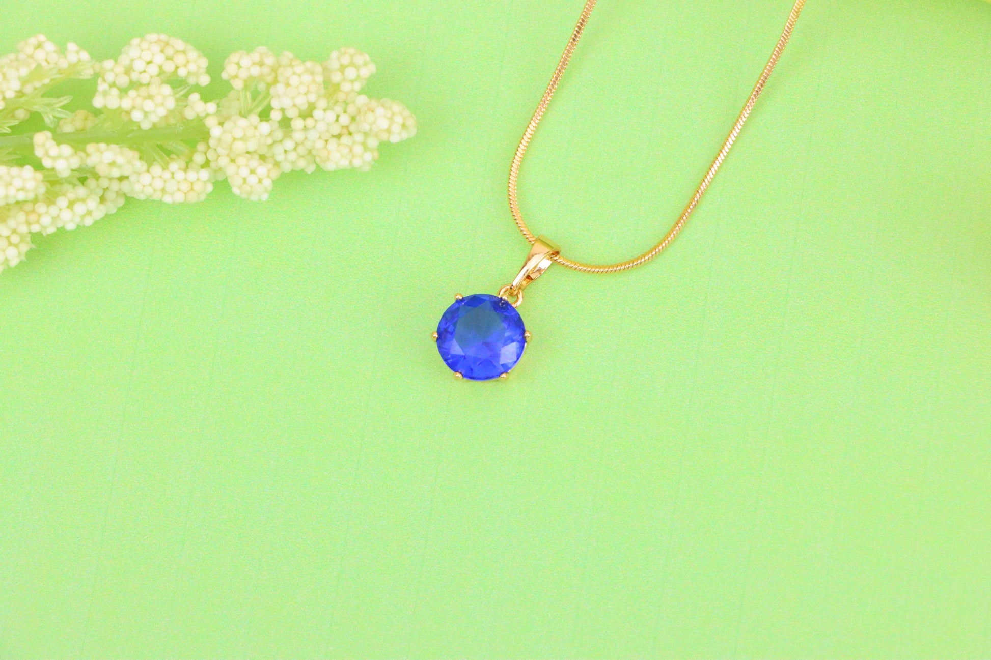 Elegant sapphire blue pendant in a classic round cut, set in rose gold with a fine prong setting—ideal for refined and vibrant styling.