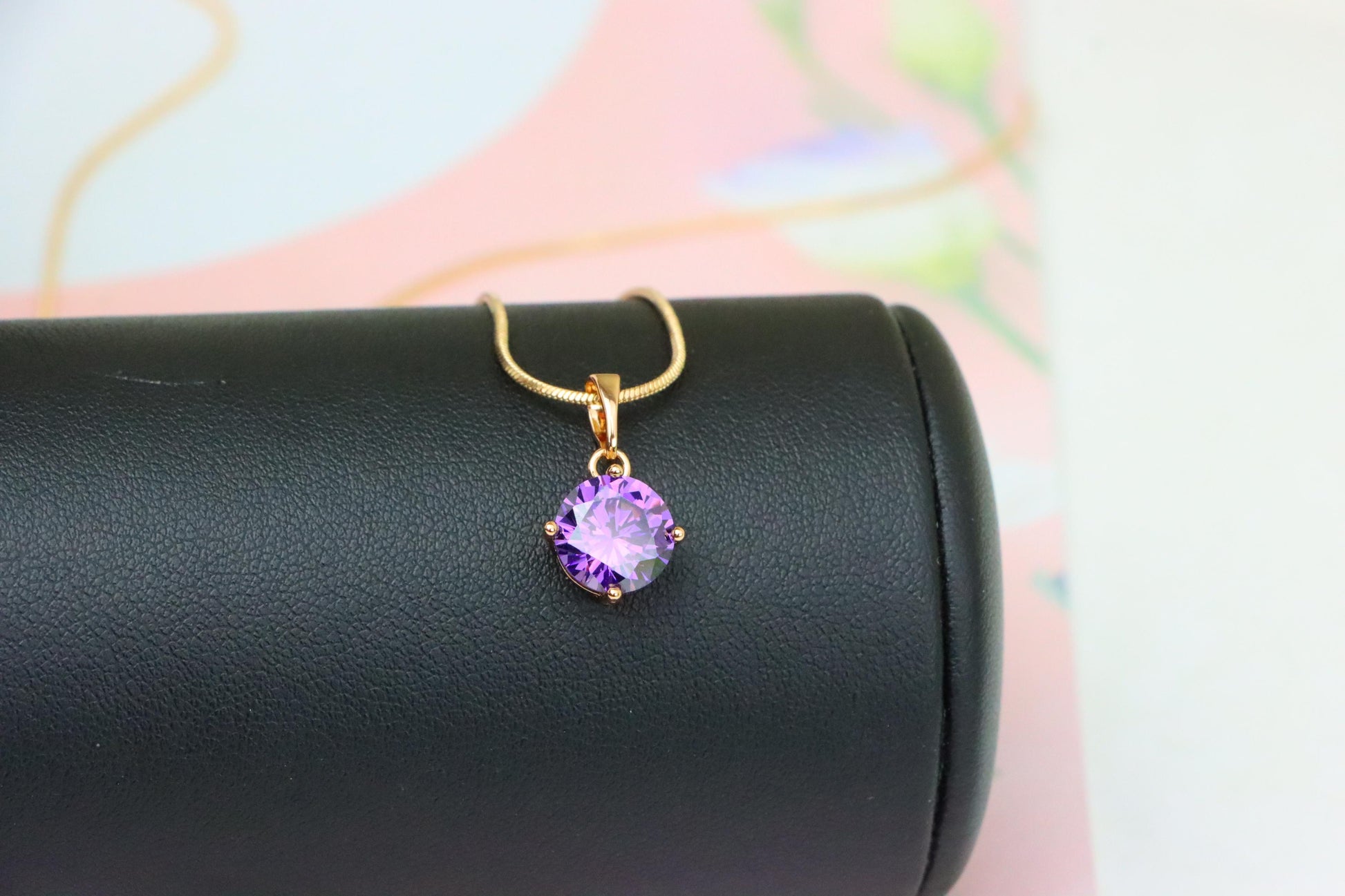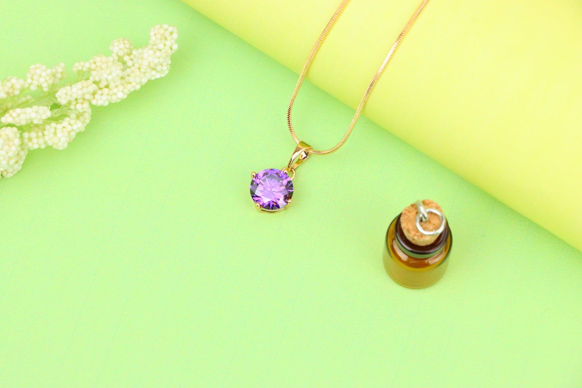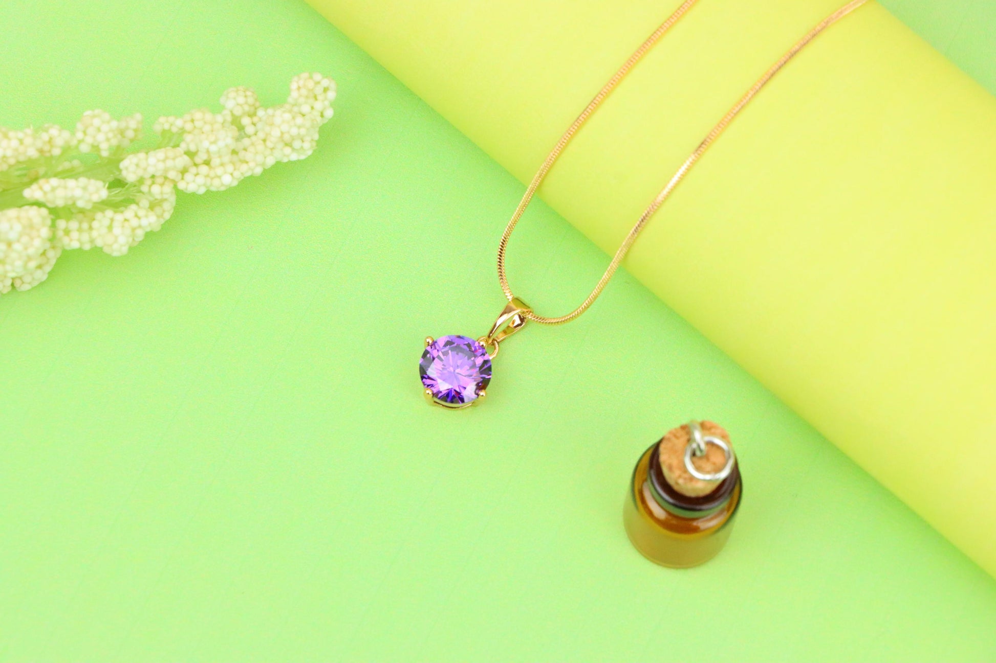 Shimmering Round Purple Pendant in Gold Plated Brass Setting, XPPT1665