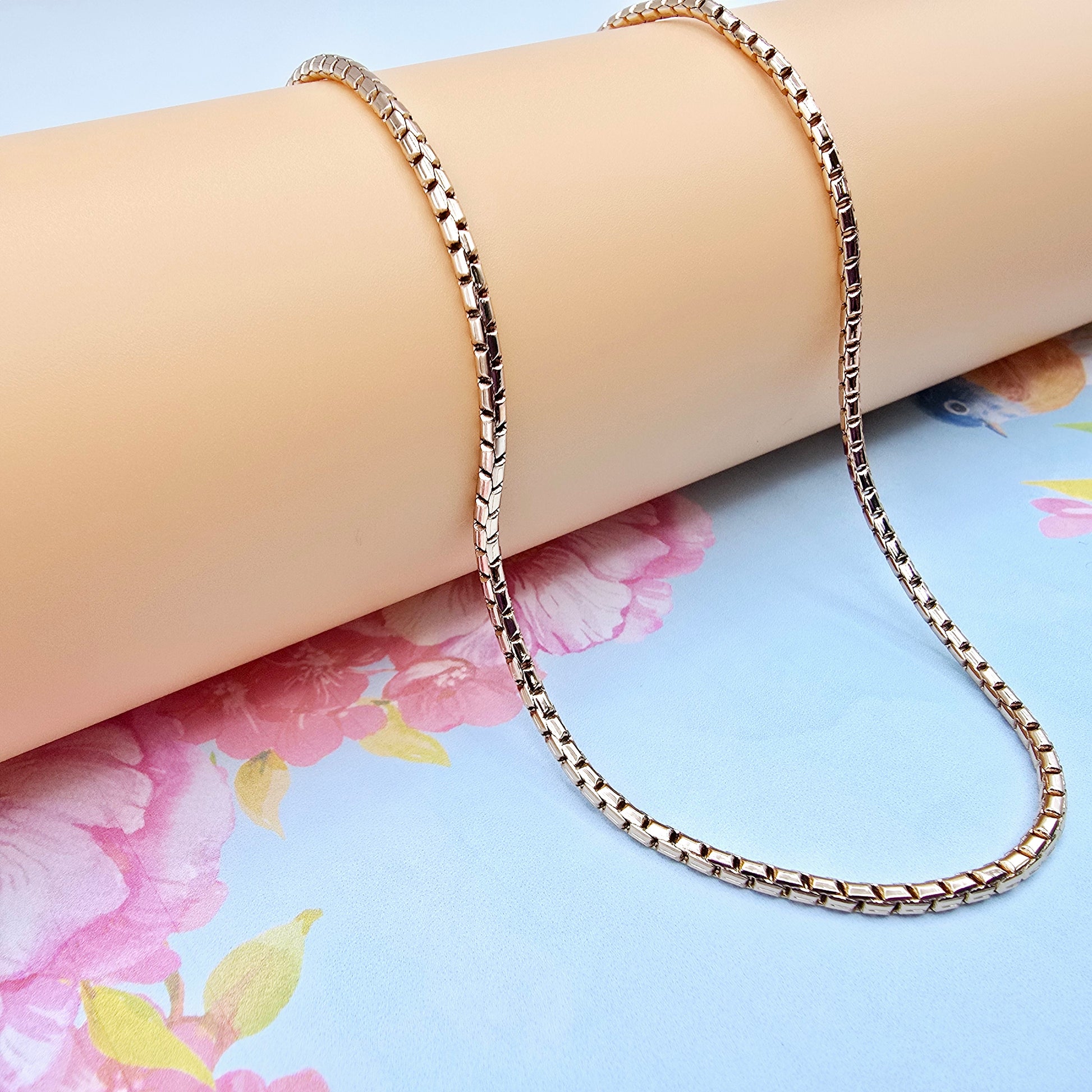Slim Rose Gold Box Chain Necklace for Men & Women, 19.7 Inch Length, XPNL0077