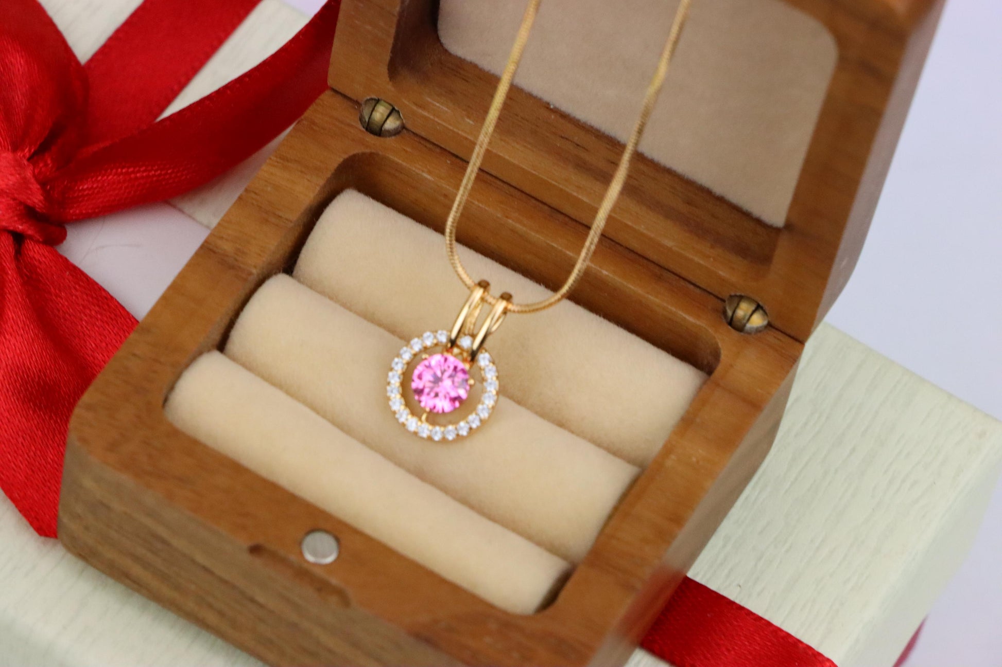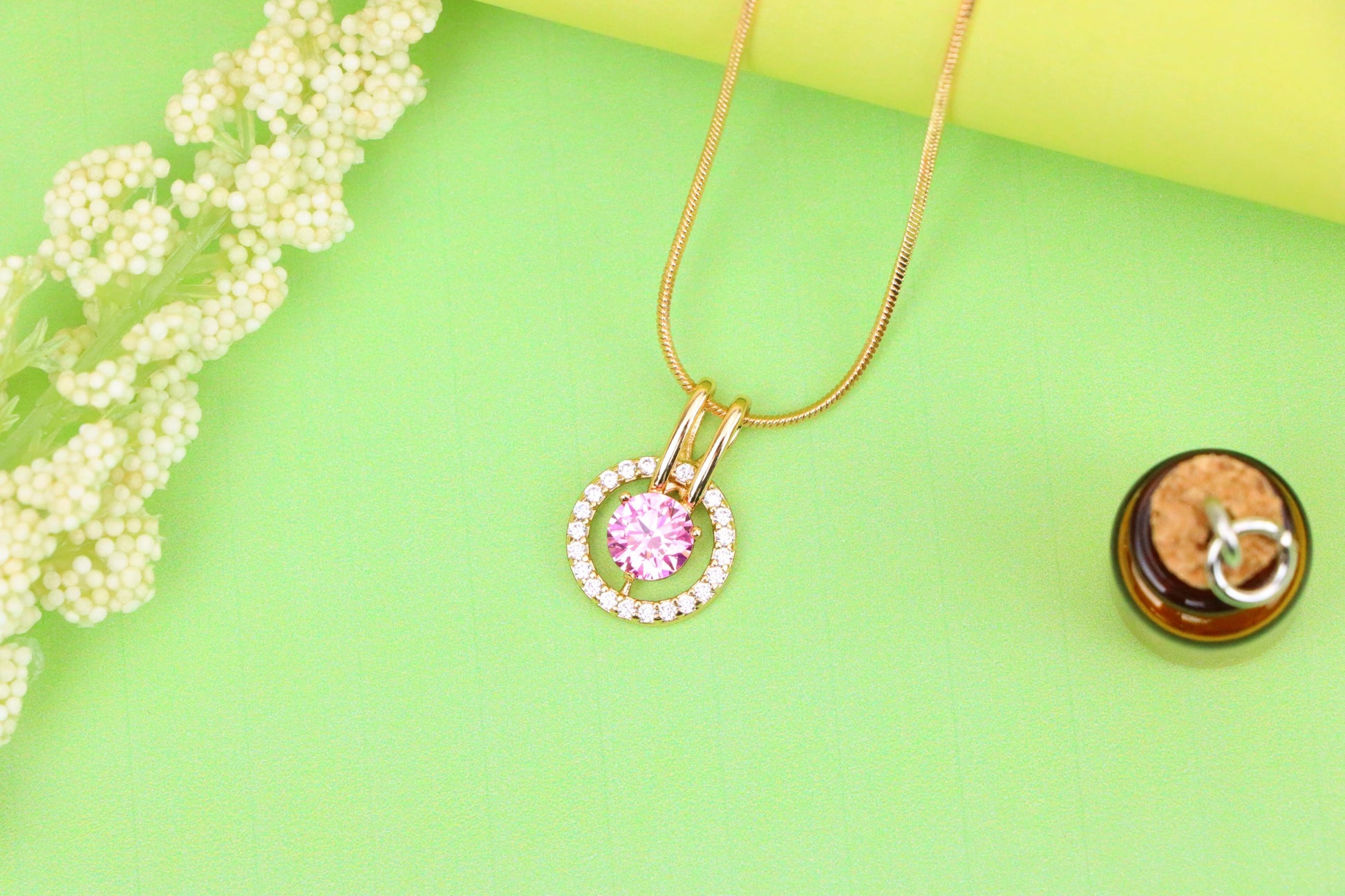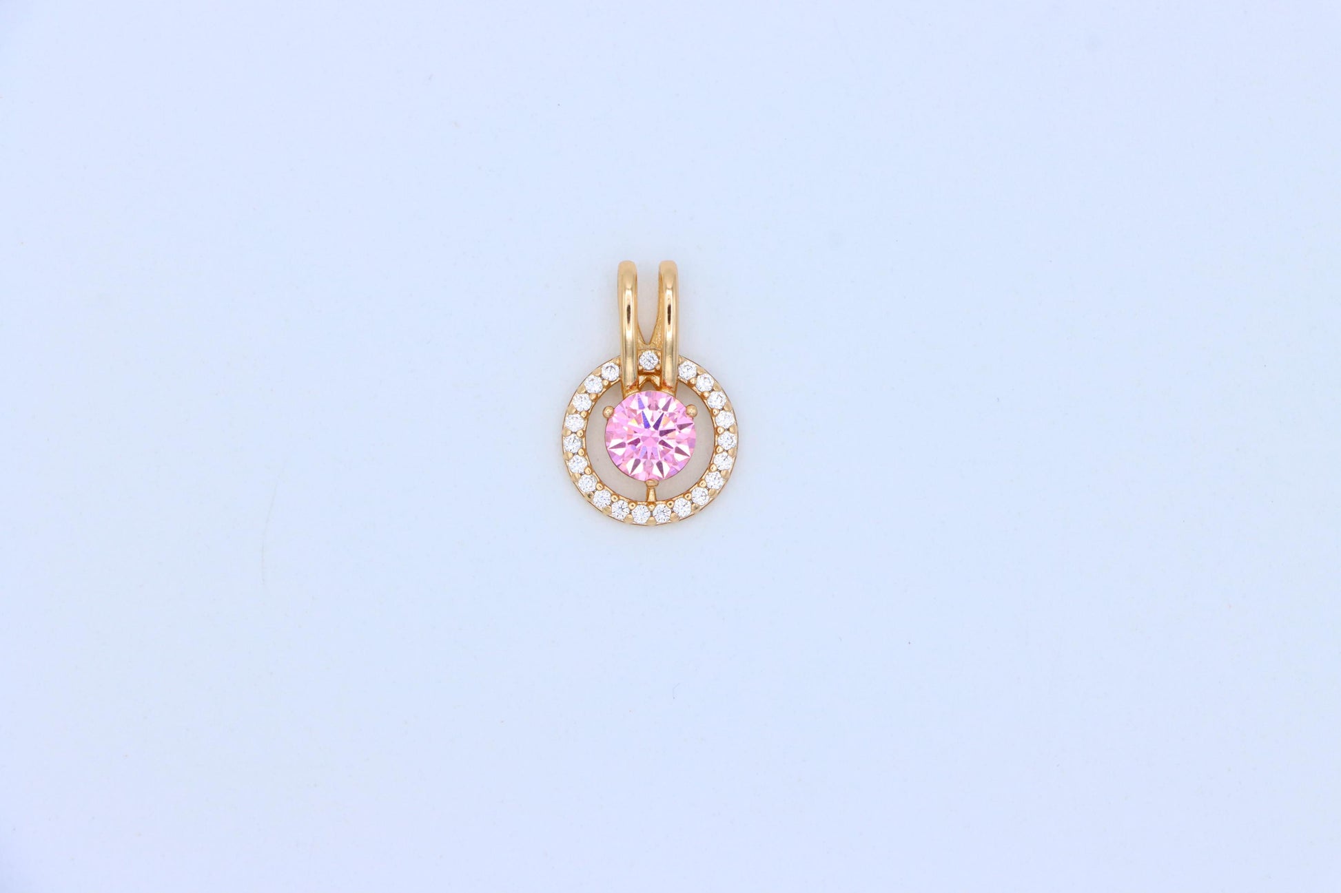 Sparkling Pink Halo Pendant with Gold Plated Brass Frame, XPPT1712