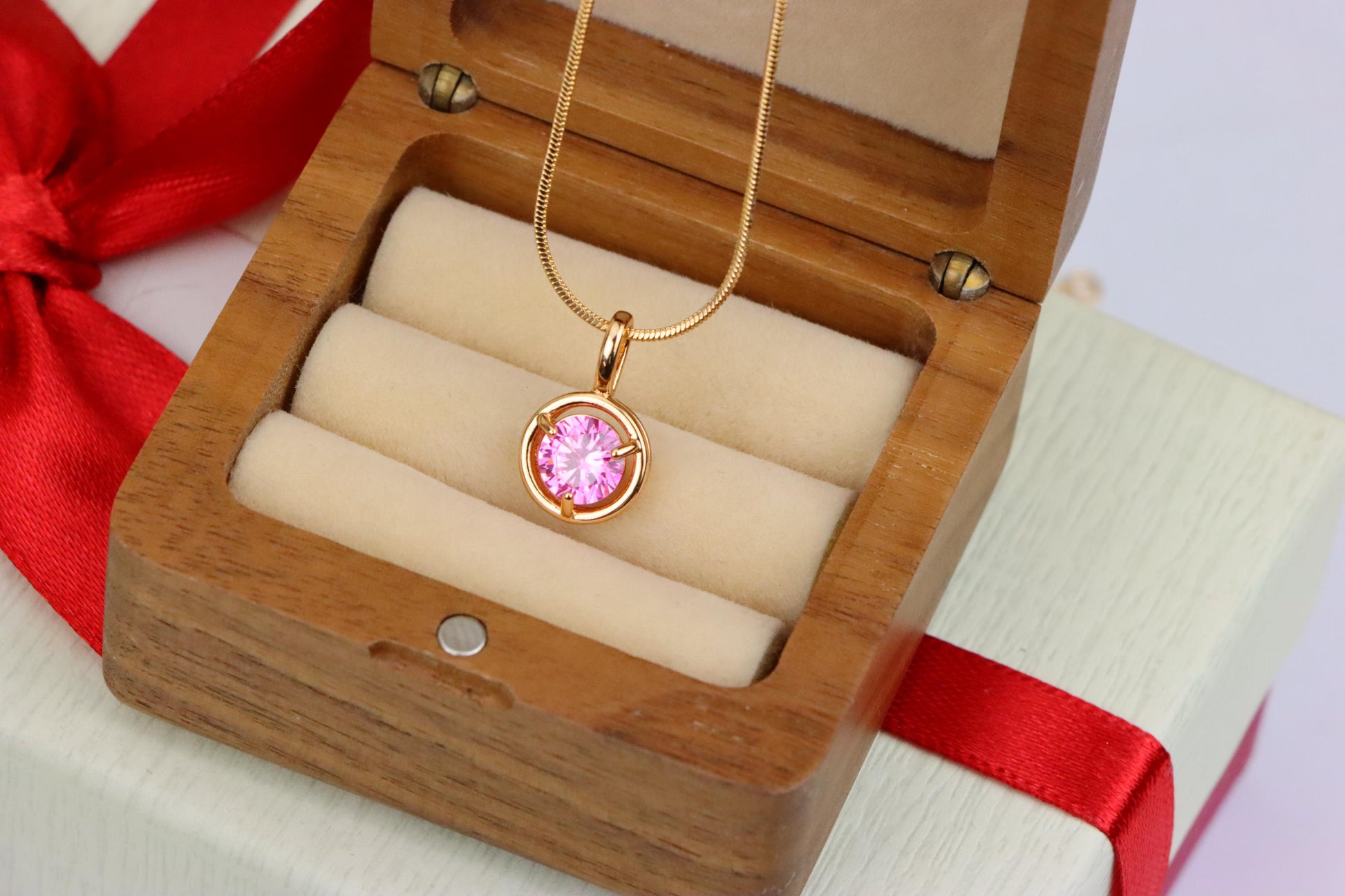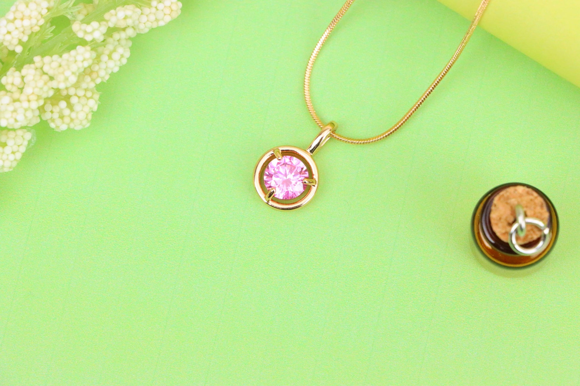 Sparkling Pink Round Pendant in Gold Finish – Delicate & Elegant, XPPT1704 (2150-6)