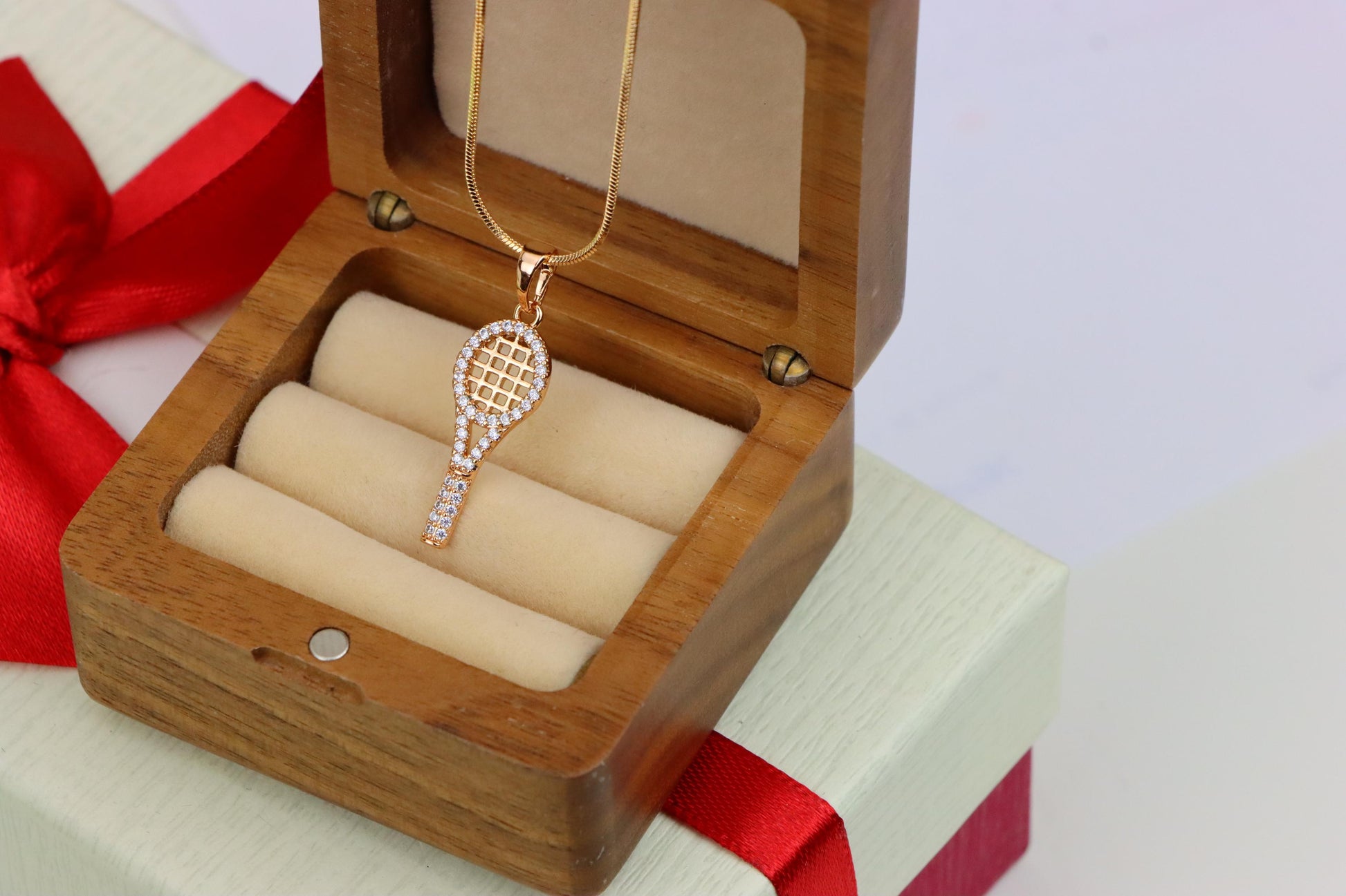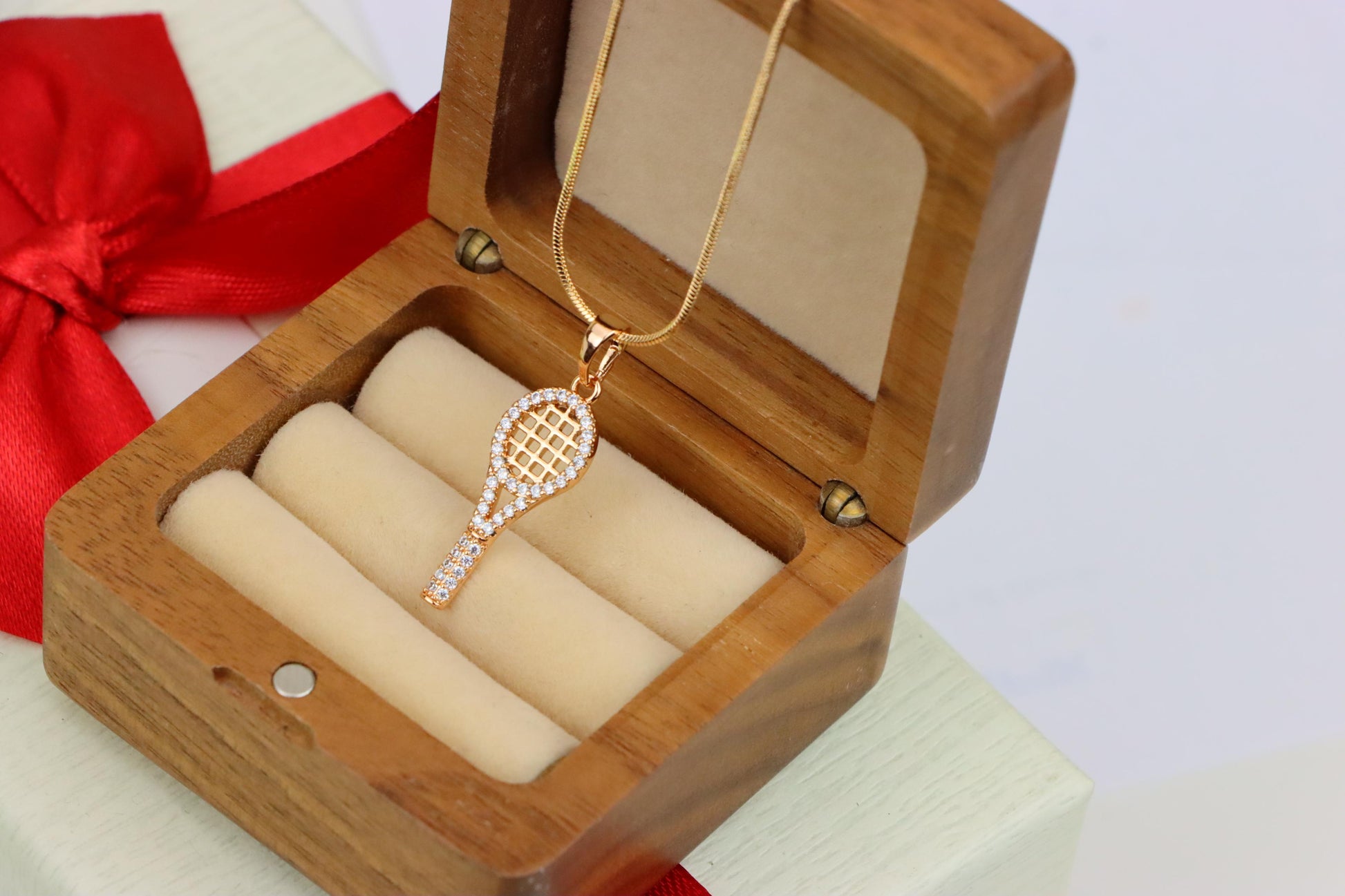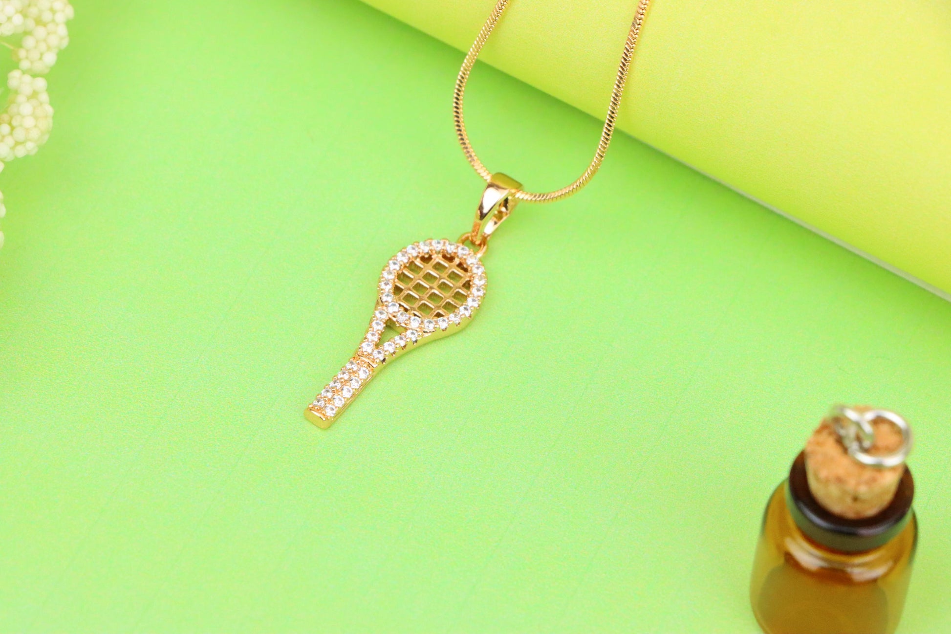 Sparkling Rose Gold Tennis Racket Pendant, XPPT1313