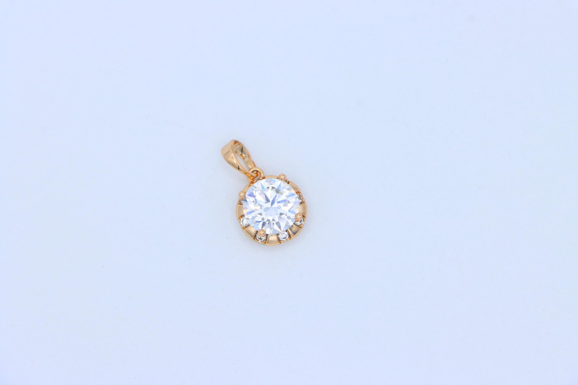 Sparkling White Round Pendant in Gold Finish with Crystal Accents, XPPT1648 (2163-3)