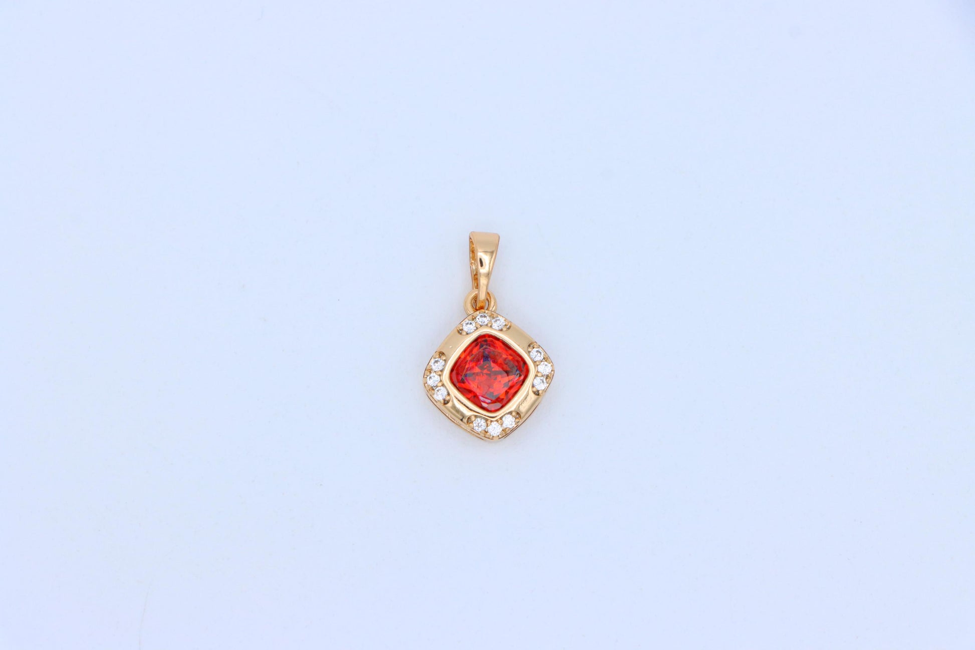 Square Red Stone Pendant in Gold Plated Brass with Sparkling Halo, XPPT1764 (2152-7)