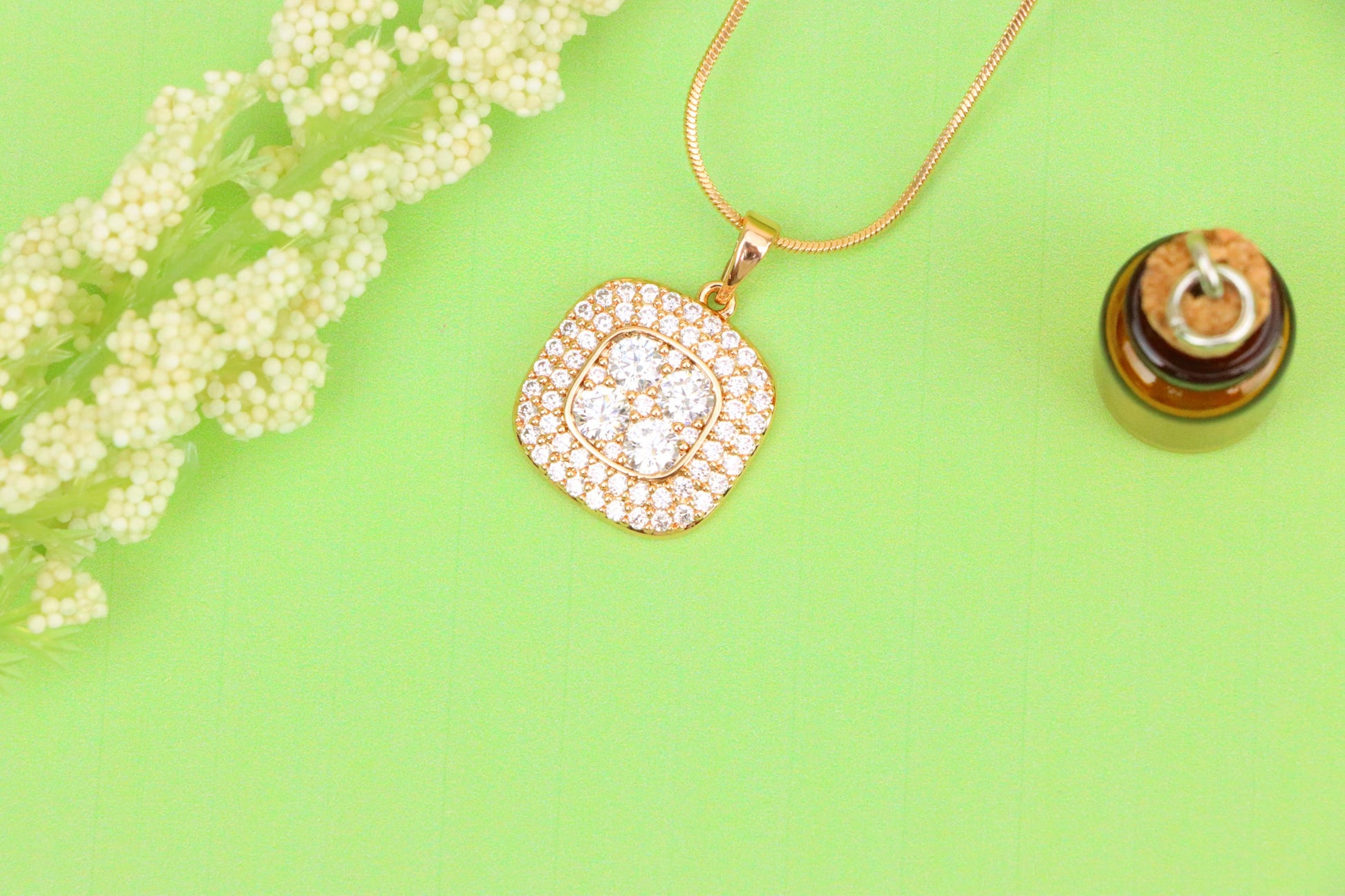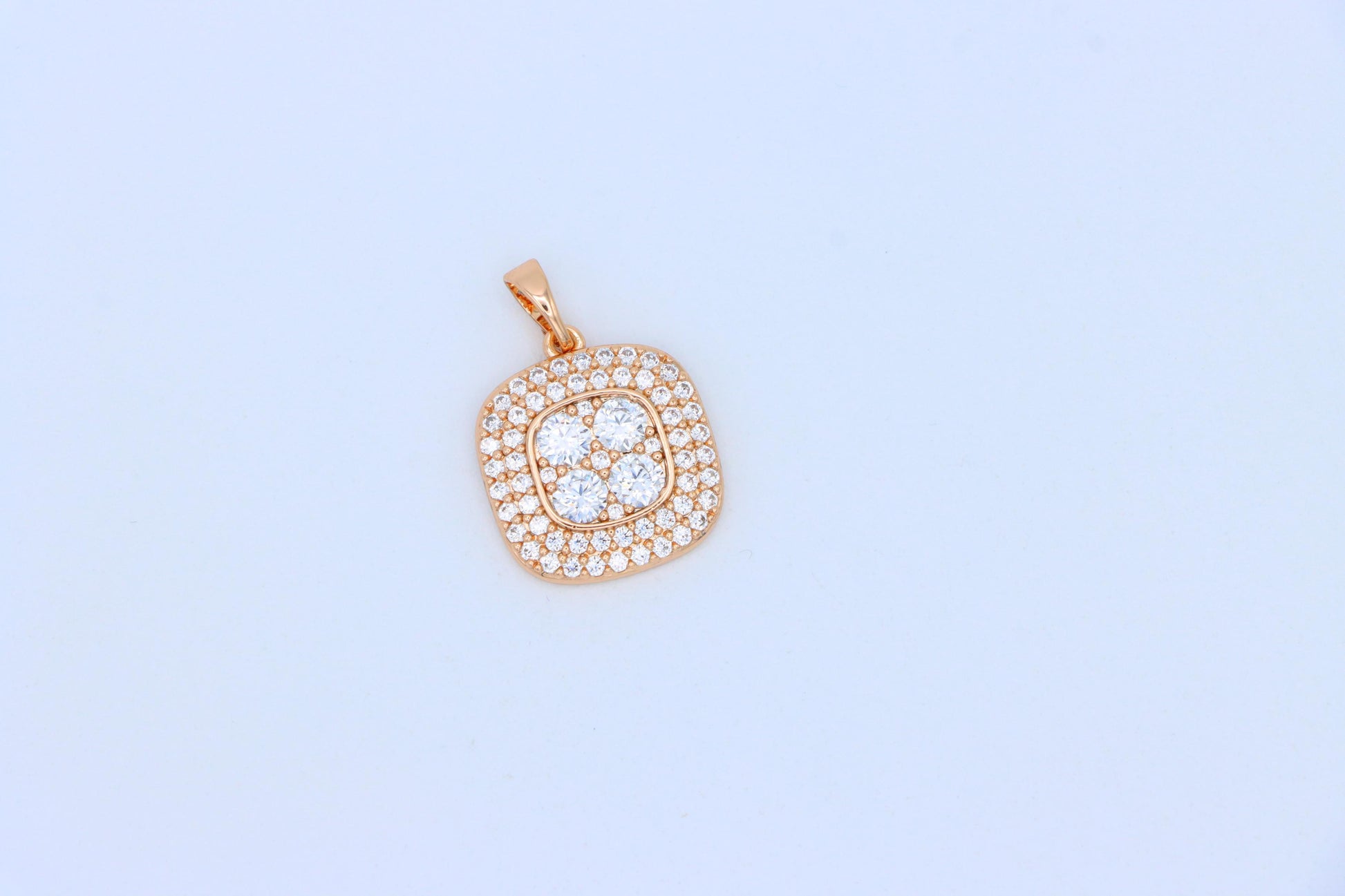 Square Rose Gold Pendant with Sparkling White Crystal Accents, XPPT1871
