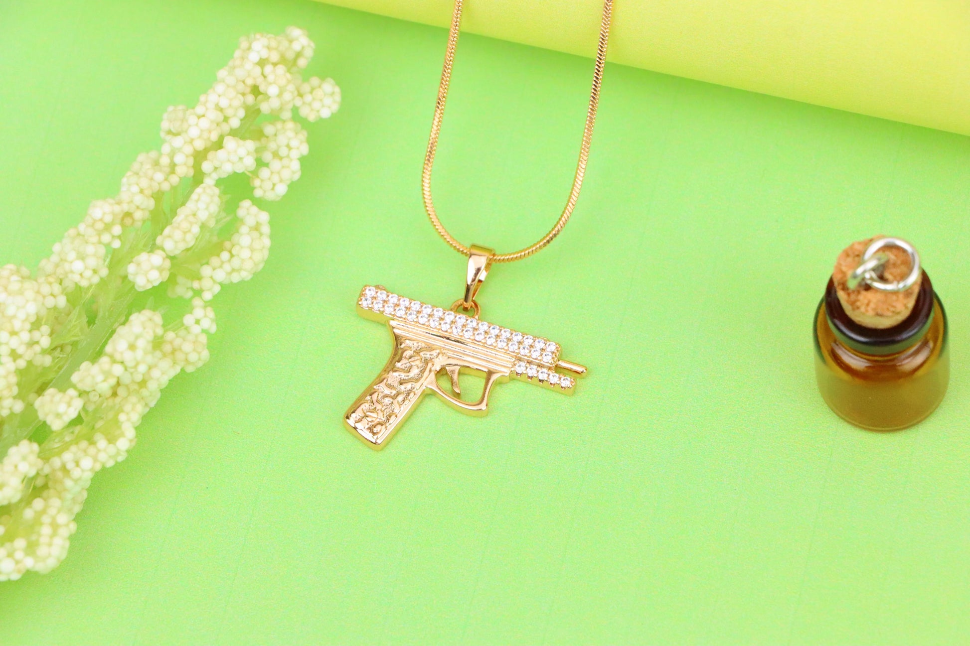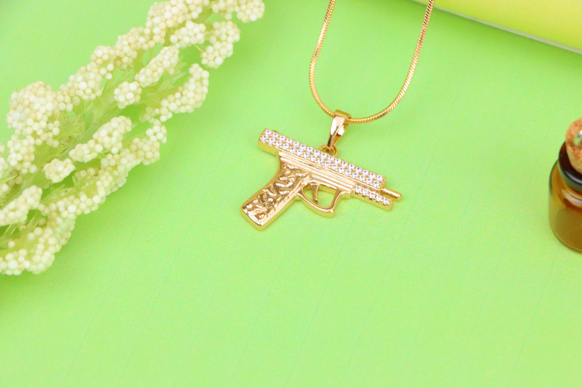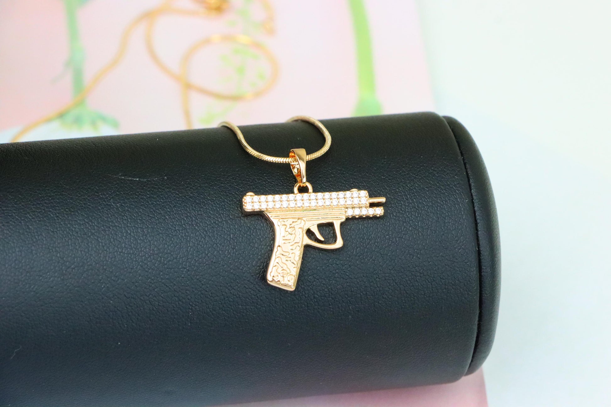 Stylish Gun-Shaped Rose Gold Pendant with Stone Detail, XPPT1286 (2129-2)