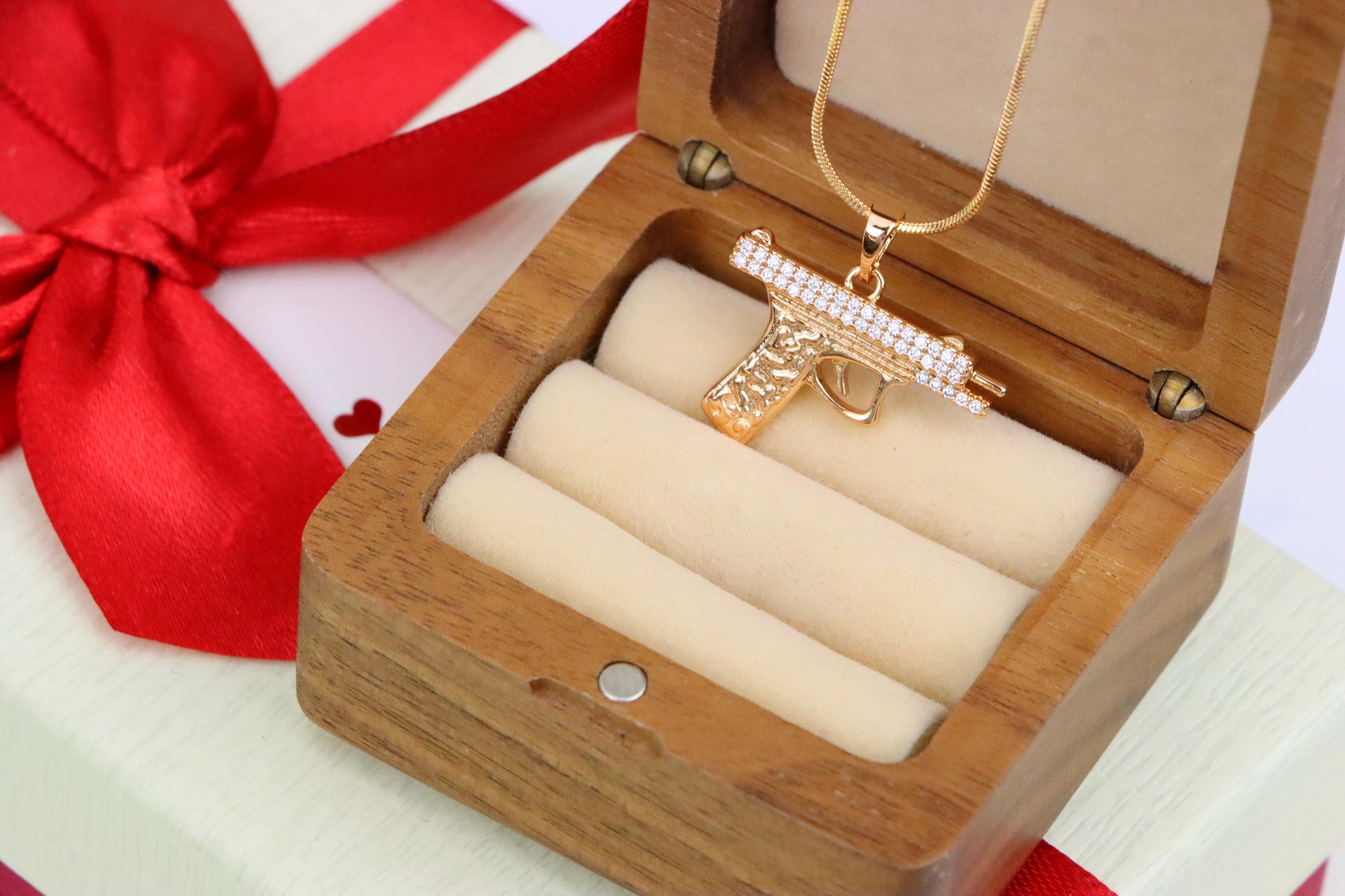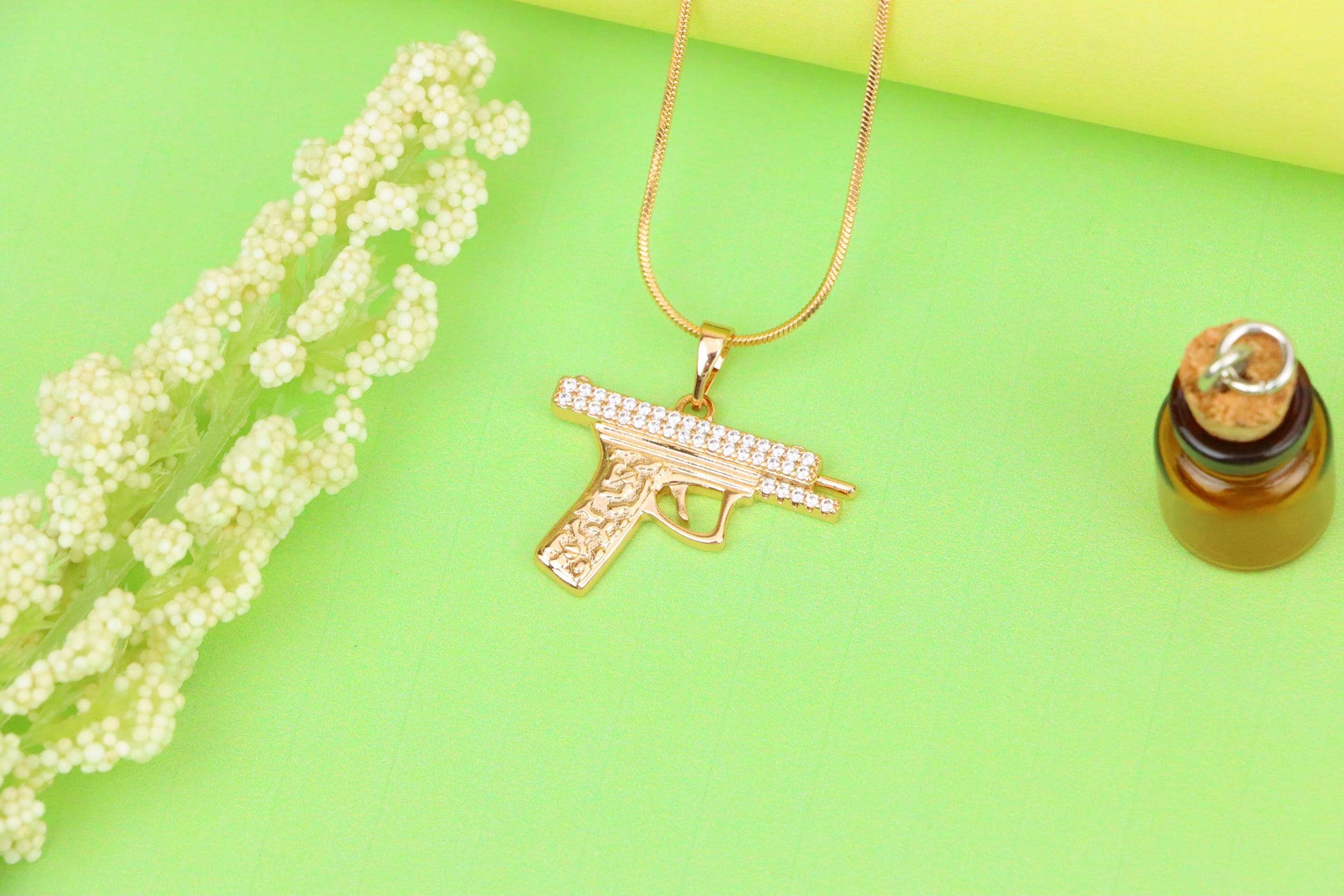 Stylish Gun-Shaped Rose Gold Pendant with Stone Detail, XPPT1286