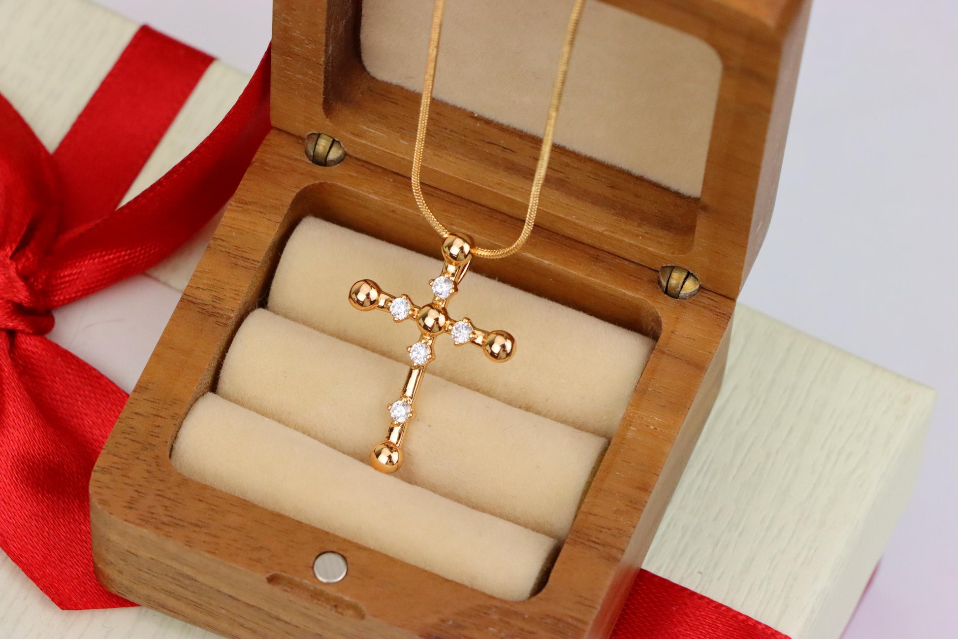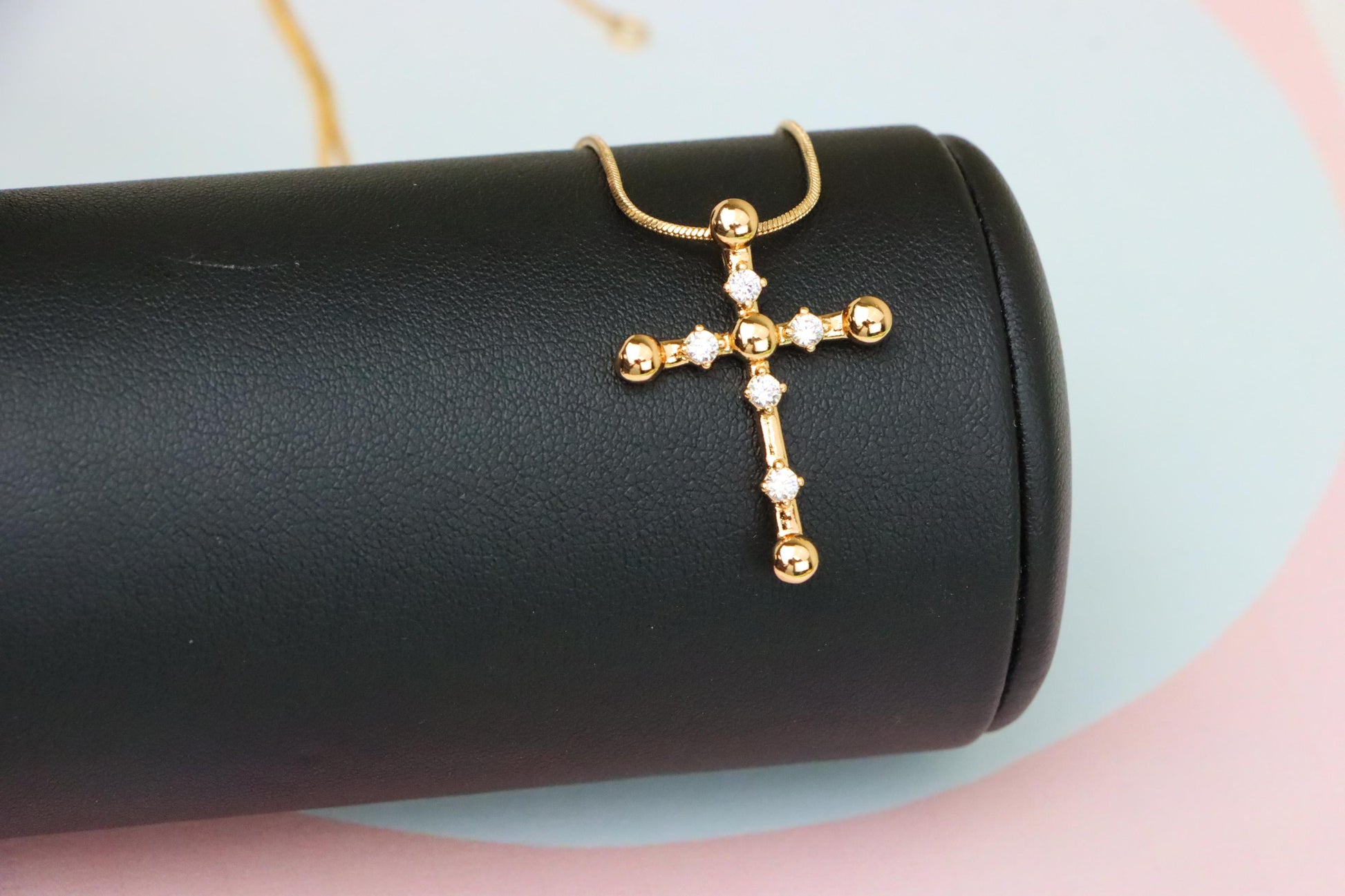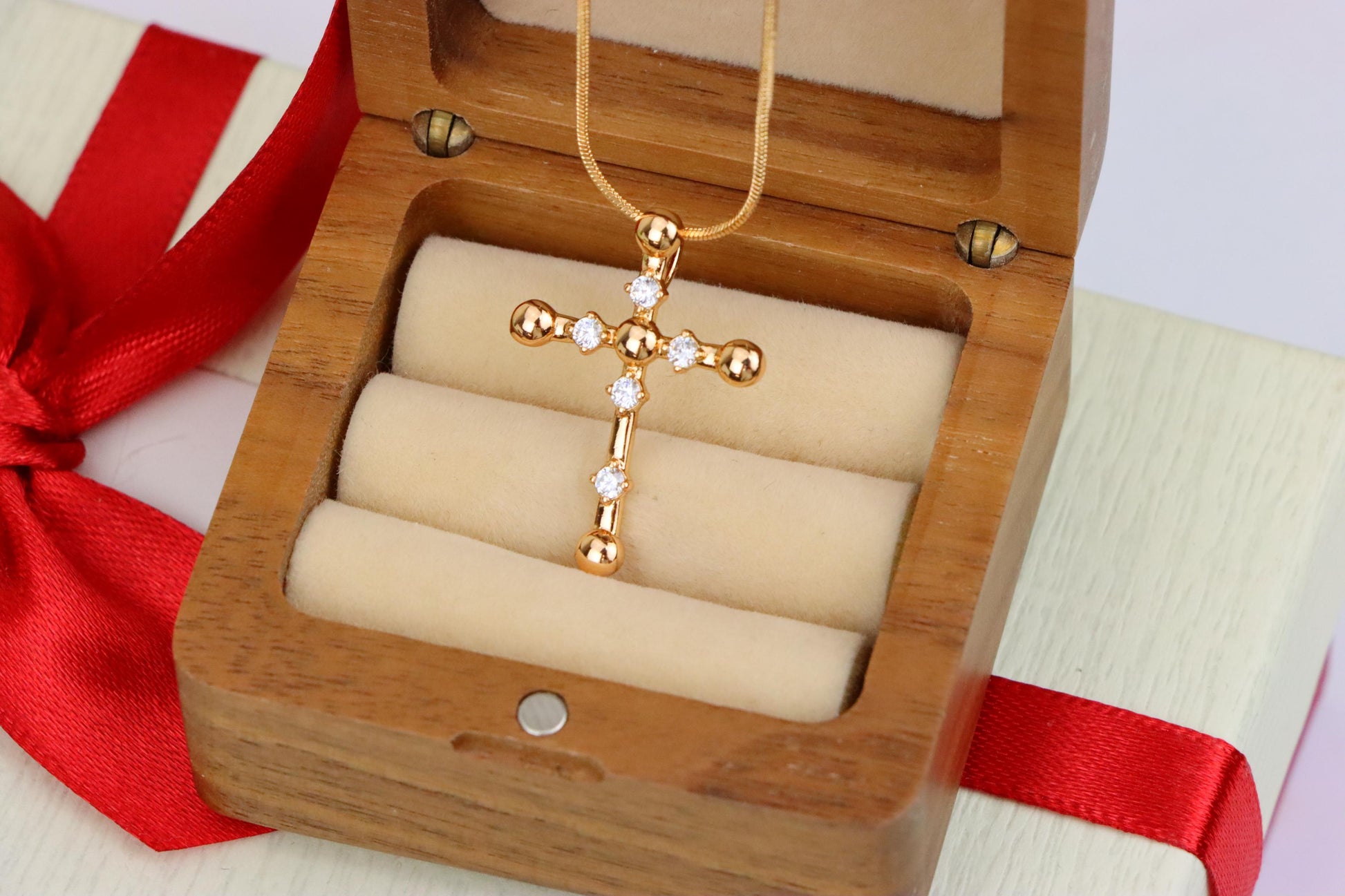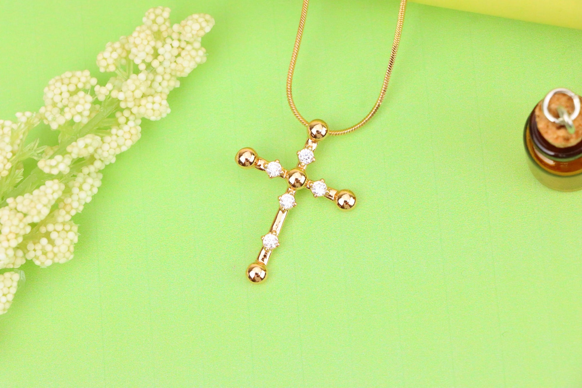 Stylish Rose Gold Cross Pendant with Crystal Accents, XPPT1836