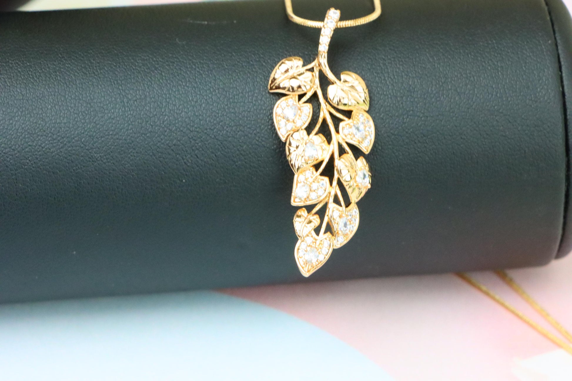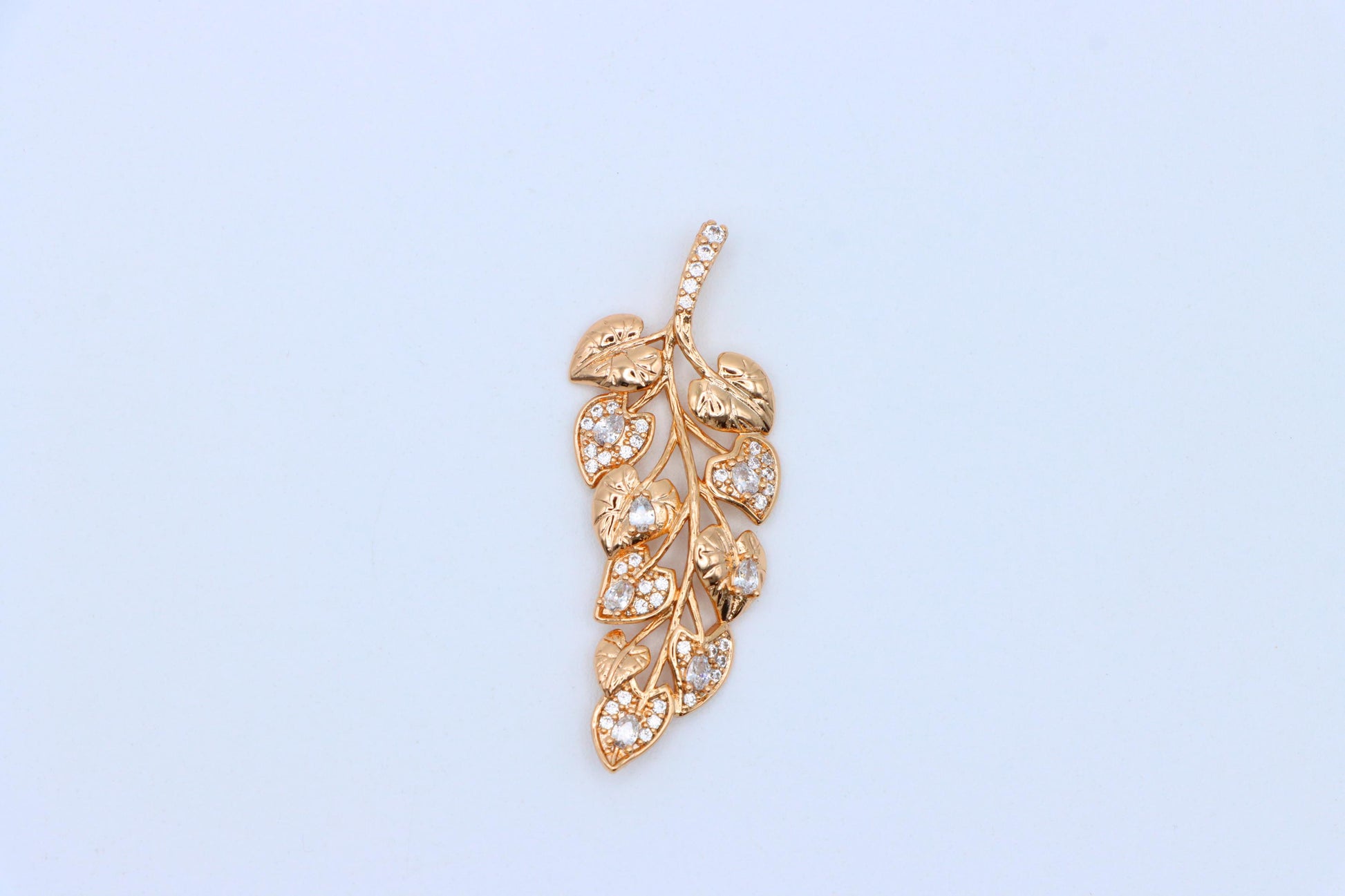 ✔️ Leaf-inspired pendant design encrusted with clear CZ stones