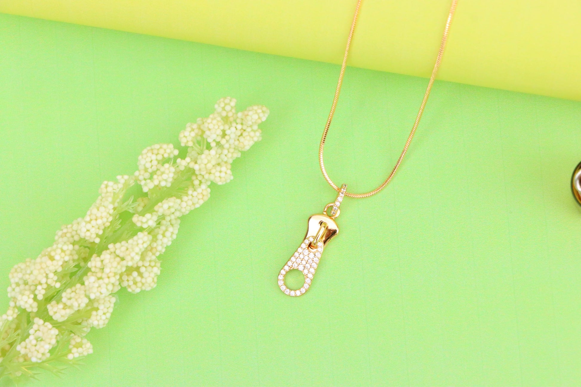 Stylish Rose Gold Zipper Shape Pendant with Sparkling Stones, XPPT1477