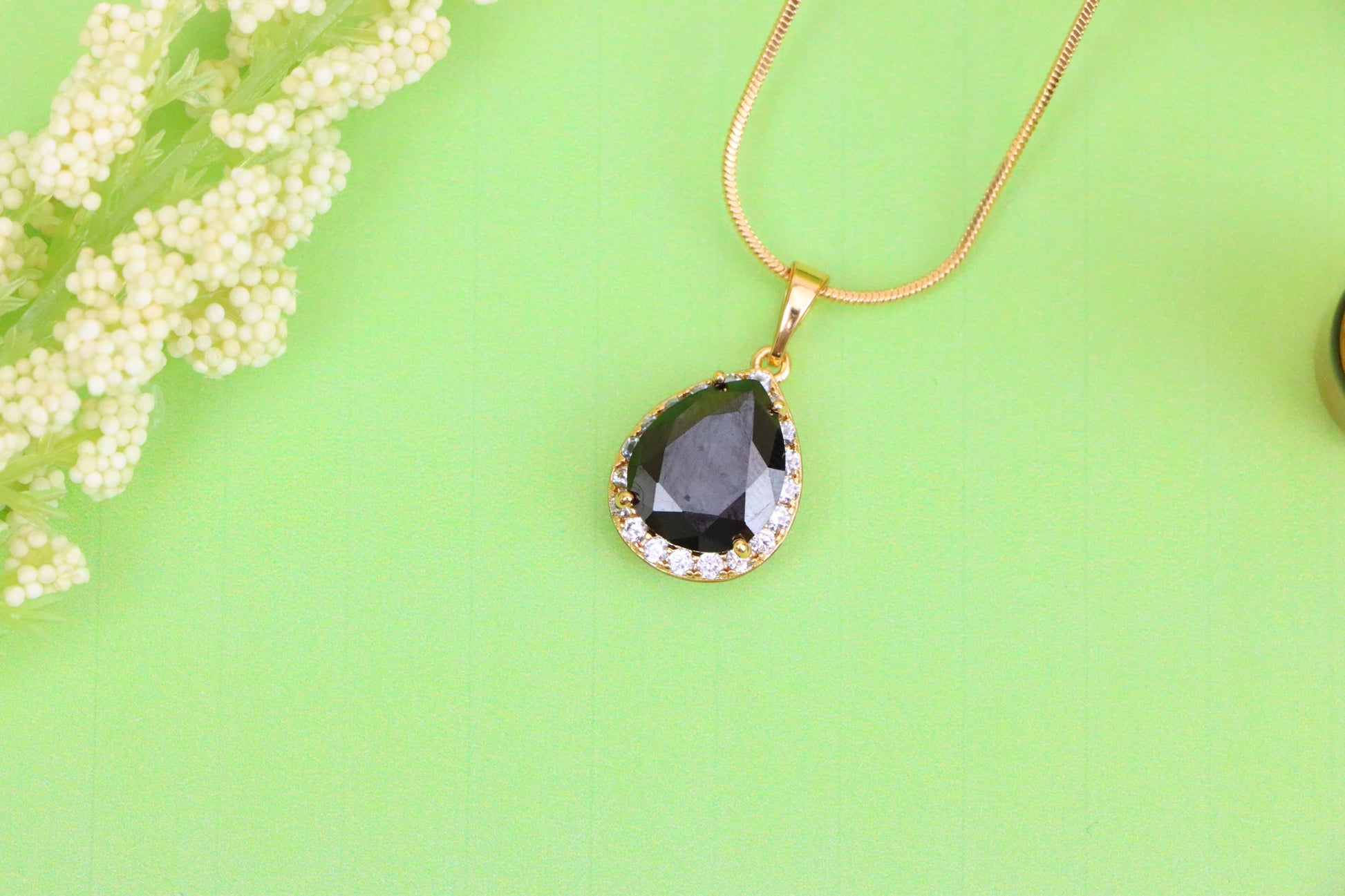 Teardrop Black Pendant with White Crystal Border in Rose Gold Finish, XPPT1614