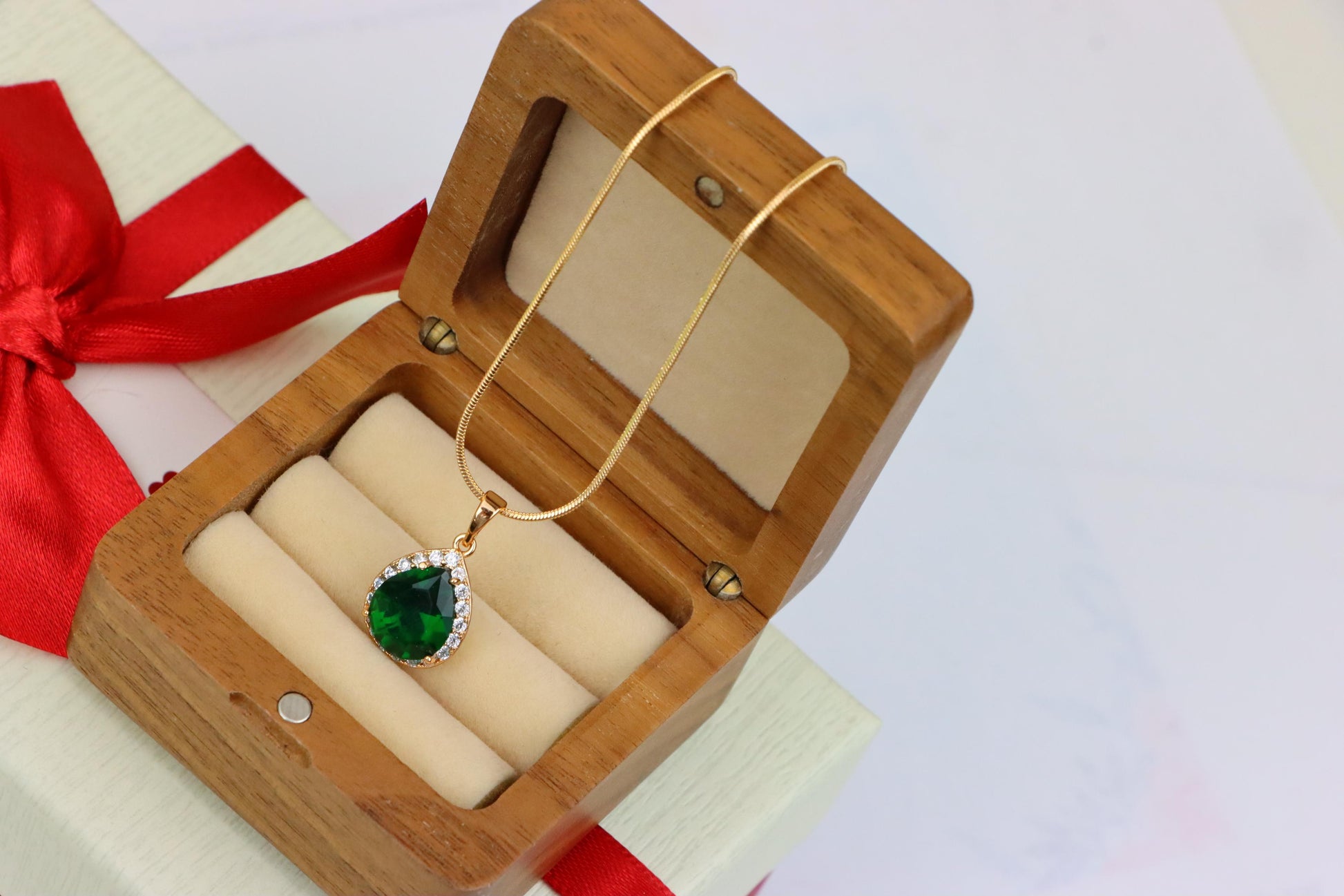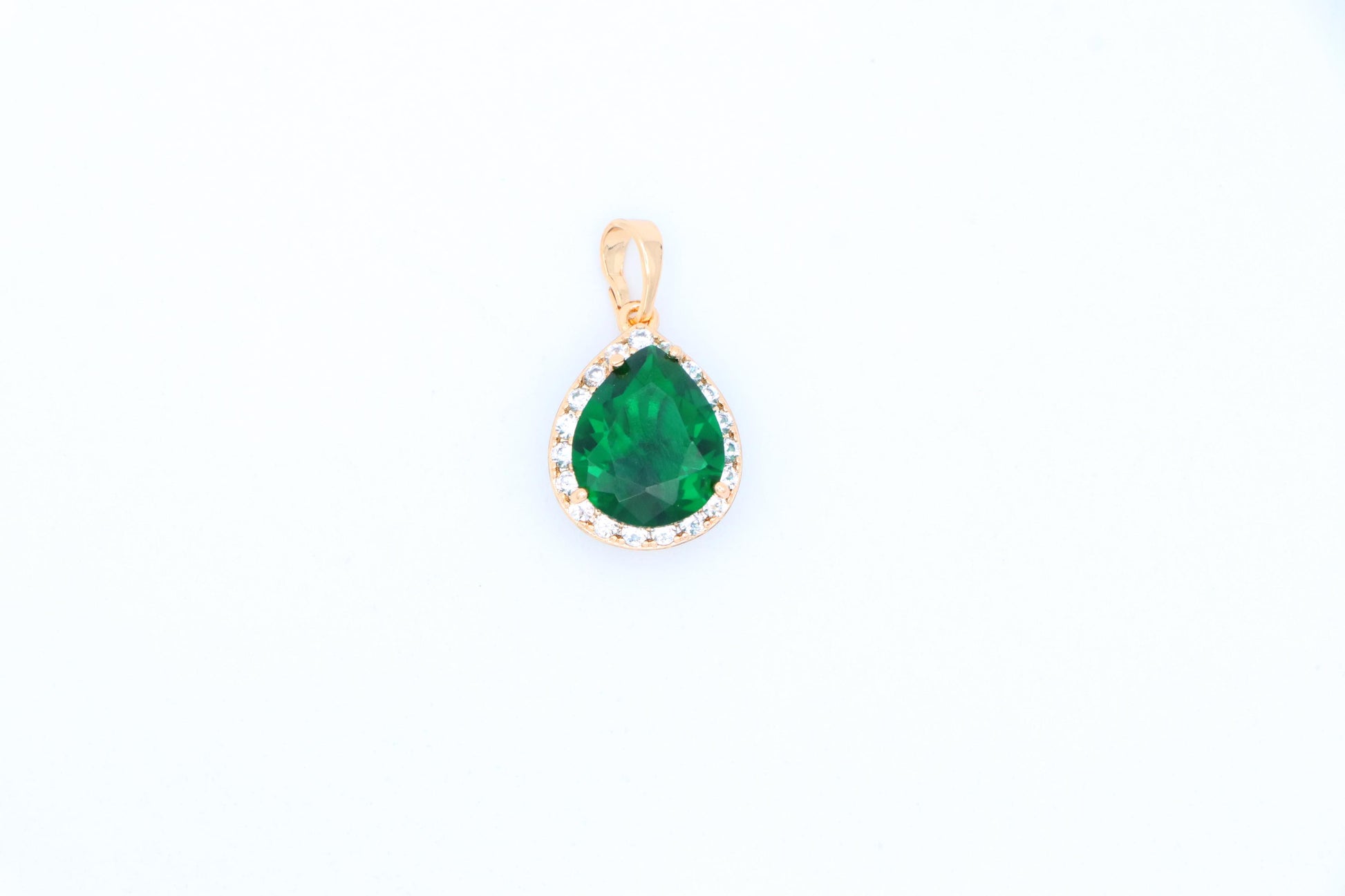 Elegant teardrop pendant showcasing rich green sparkle and refined detail.