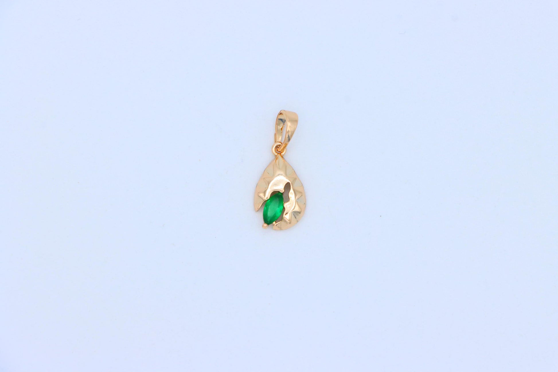 Teardrop Leaf Pendant with Marquise Green Stone in Gold Finish, XPPT1726 (2150-9)