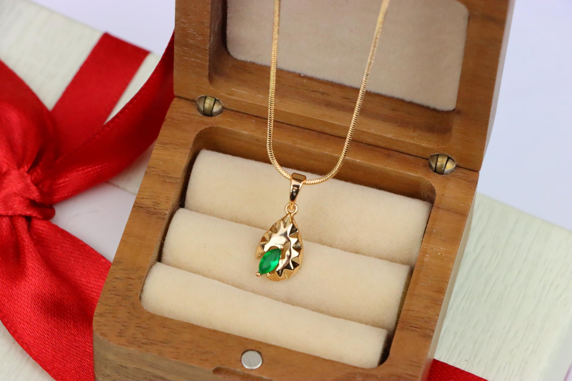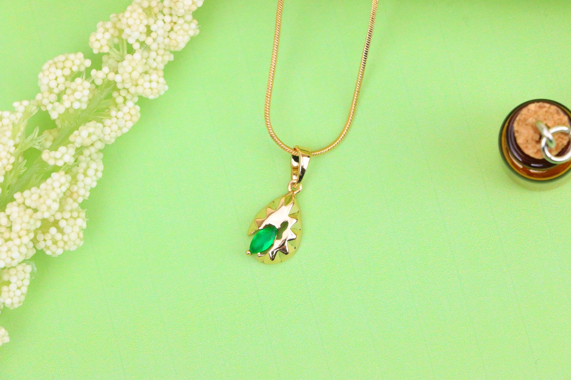 Teardrop Leaf Pendant with Marquise Green Stone in Gold Finish, XPPT1726